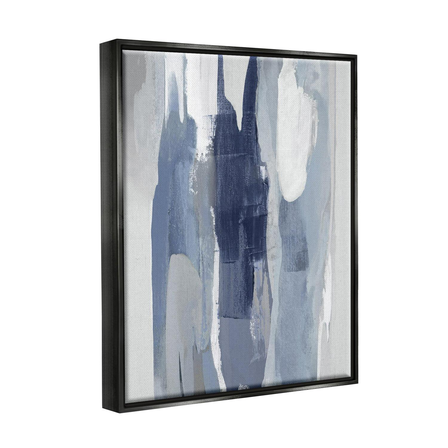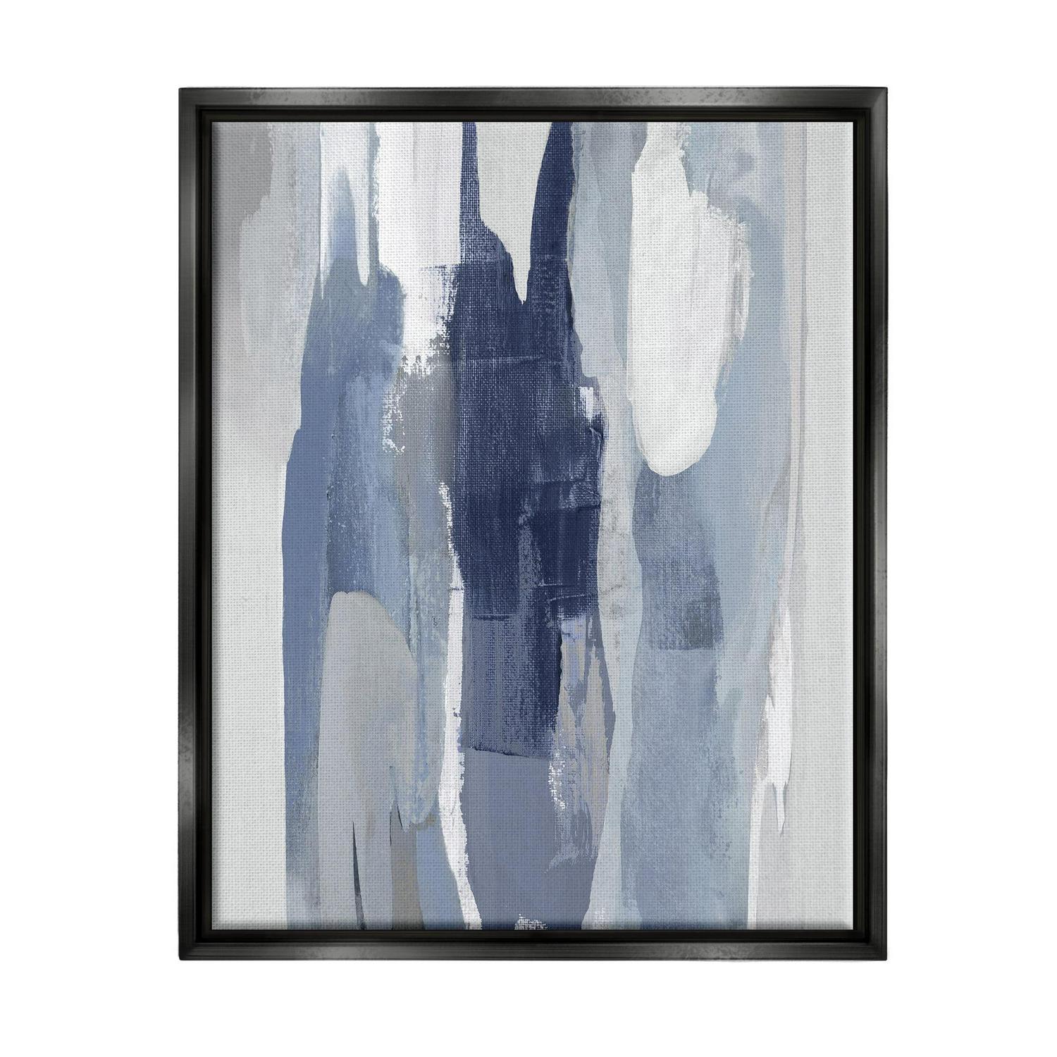 Stupell Industries Layers of Blue and White Abstract Movements Jet Black Framed Floating Canvas Wall Art, 16×20, by Jackie Hanson