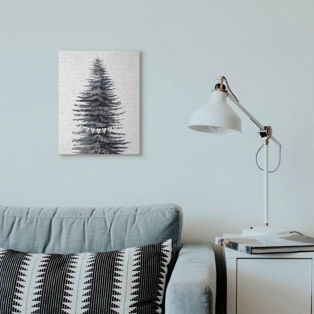 Stupell Industries Snow Covered Christmas Tree Believe Holiday Word DesignCanvas Wall Art By Artist Lettered and Lined