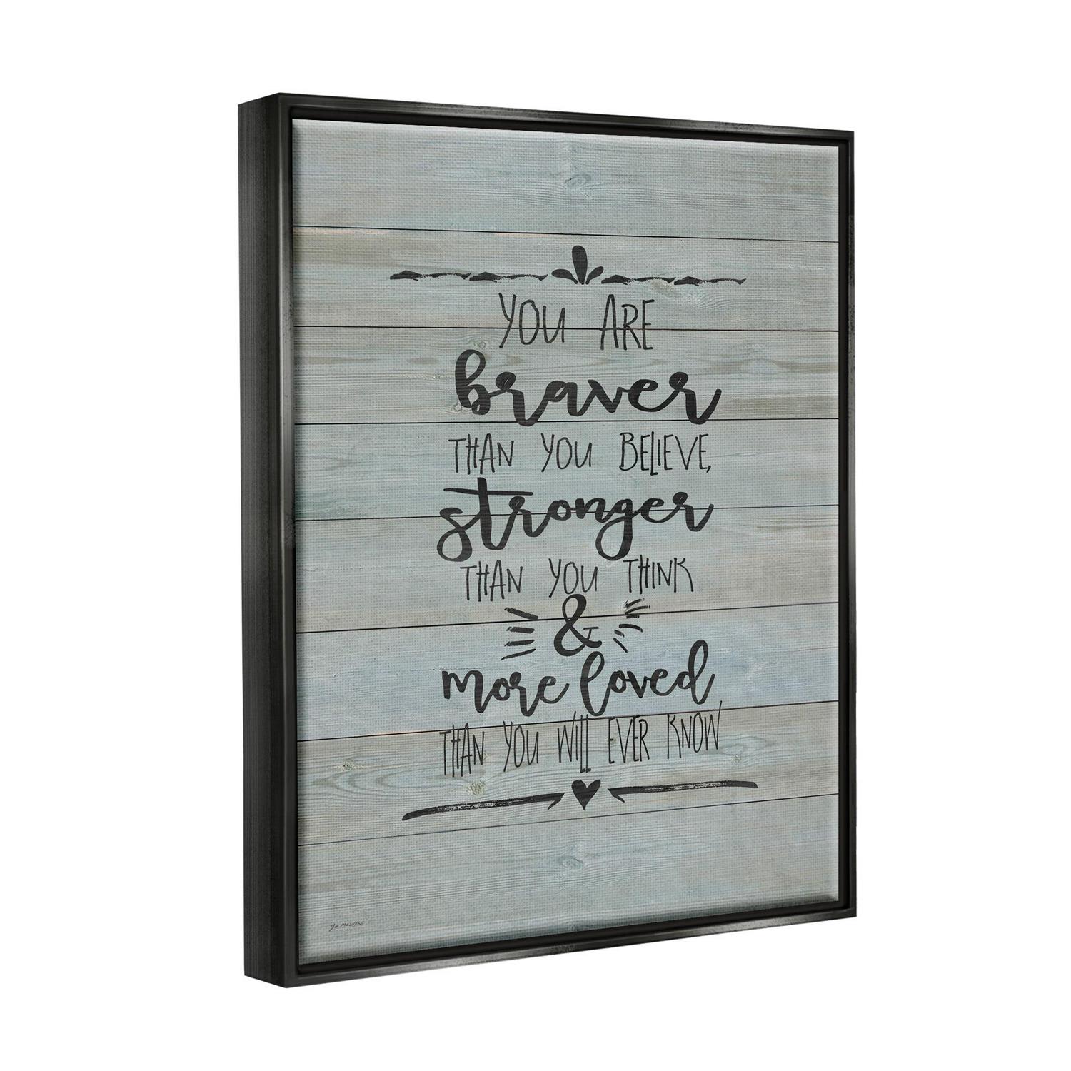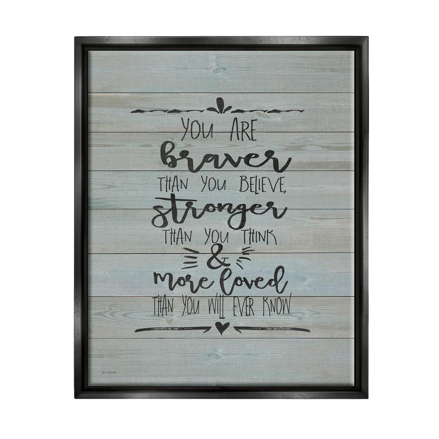 Stupell Industries You Are Braver Stronger and More Loved Jet Black Framed Floating Canvas Wall Art, 16×20, by Jo Moulton