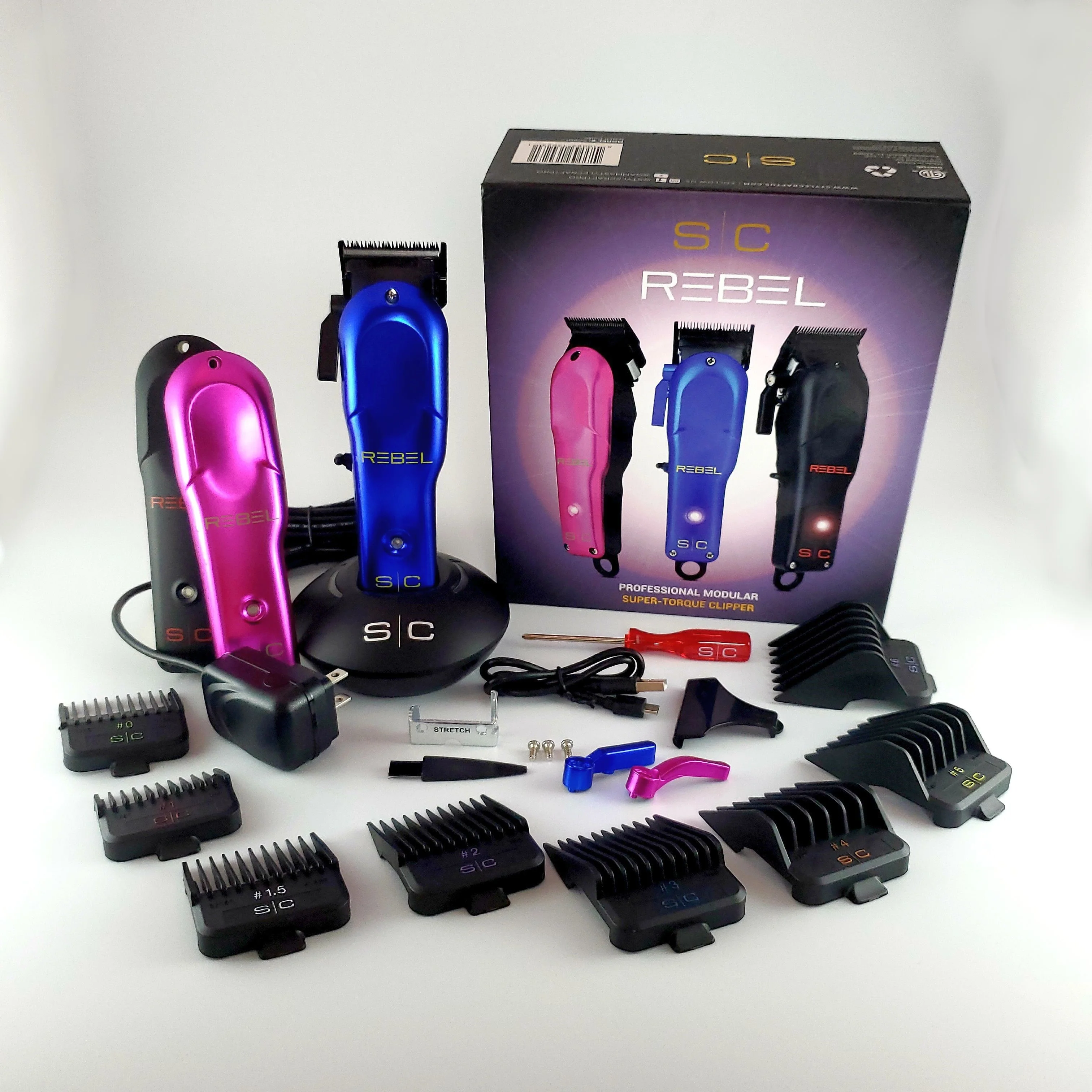 Unlock the power of professional-grade hair cutting with the StyleCraft Rebel Cordless Hair Clipper. Featuring a super-torque rotary motor with 7,200 rpm, this clipper effortlessly cuts through any hair type. The black diamond fixed blade stays sharper longer, while the lithium-ion battery provides up to 3 hours of cordless runtime. Customize your cut with the fully adjustable blade, click or freestyle lever taper control, and 8 magnetic guards. Engineered and designed in the USA, the Rebel delivers unparalleled performance and precision for a salon-quality finish every time.