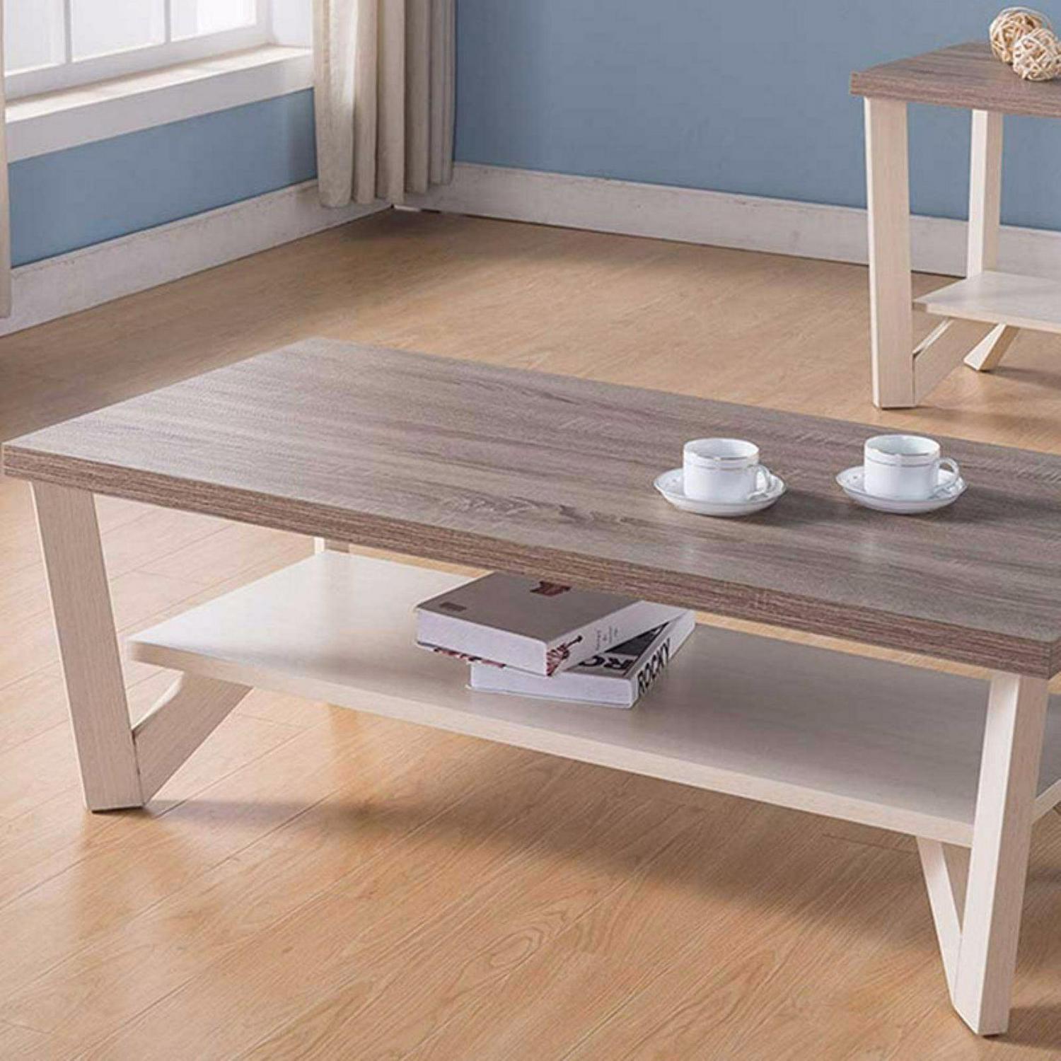 Stylish Center Display Coffee Table, Brown and White- Saltoro Sherpi