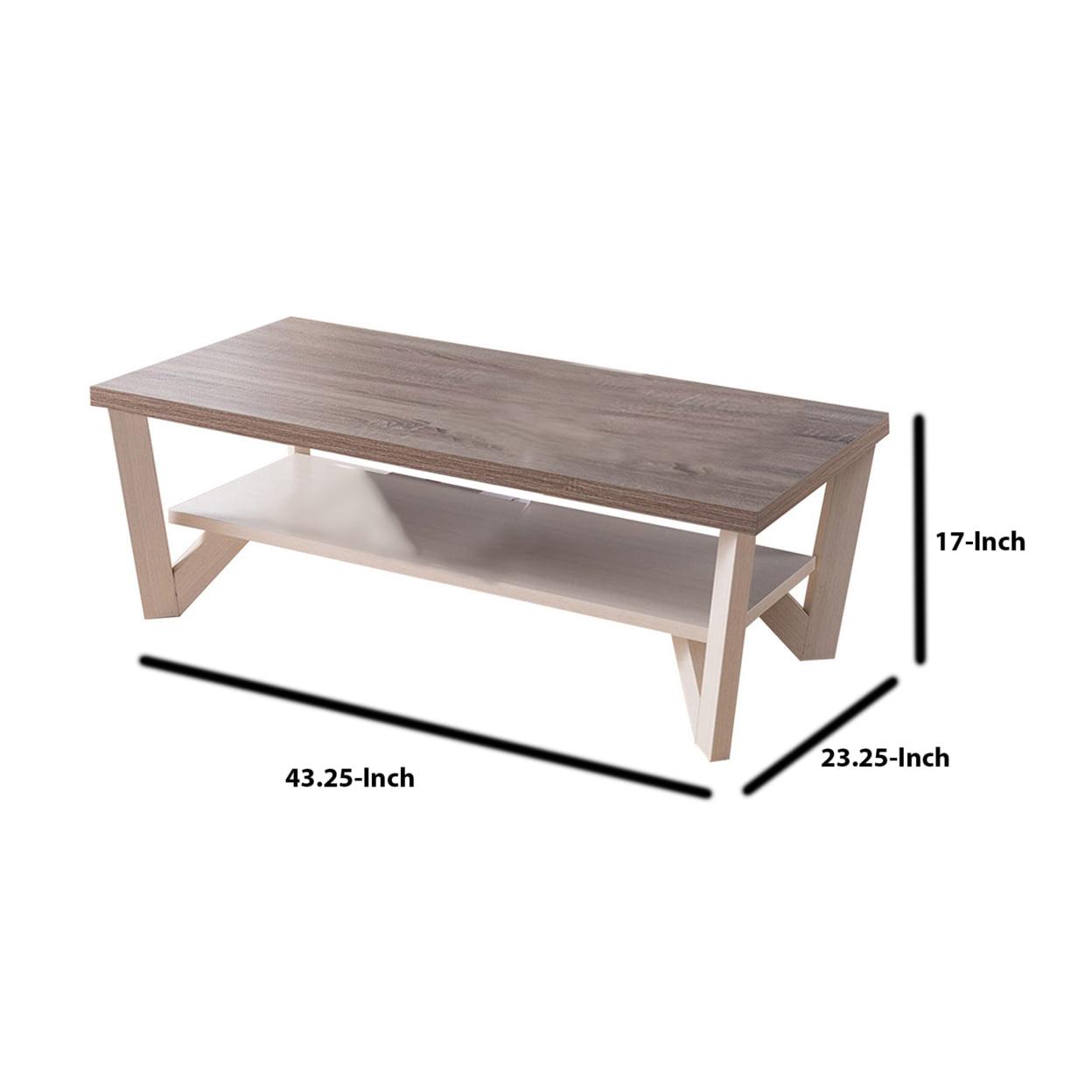 Stylish Center Display Coffee Table, Brown and White- Saltoro Sherpi If you’re looking to elevate your living decor, this coffee table is the perfect focal point. Try adding a dash of fashion-forward flair by letting a sleek tray sit in the center with a few fanned-out magazines. It has beautifully designed striking legs. The center display storage provides an ample of space for magazines, newspapers,ets
