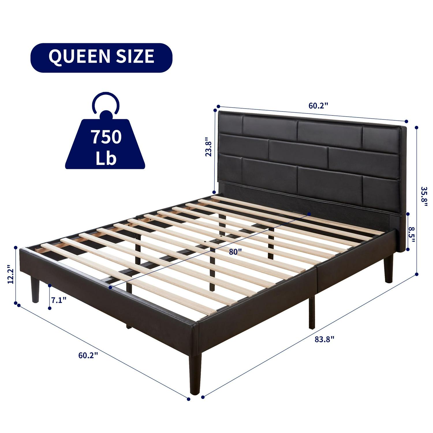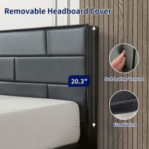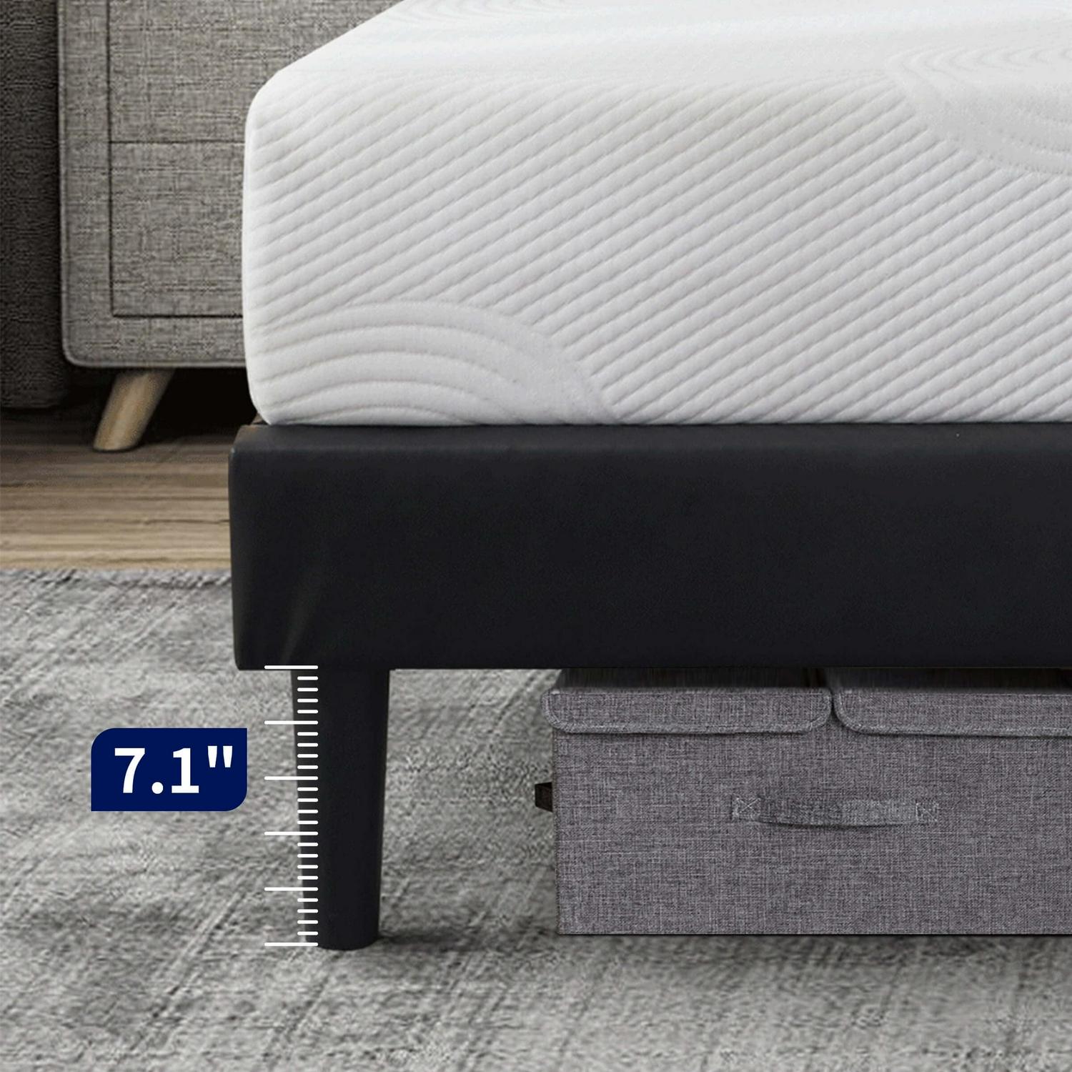Subrtex 7.1 Queen Size Platform Bed Frame with PU Leather Upholstered Headboard, Black