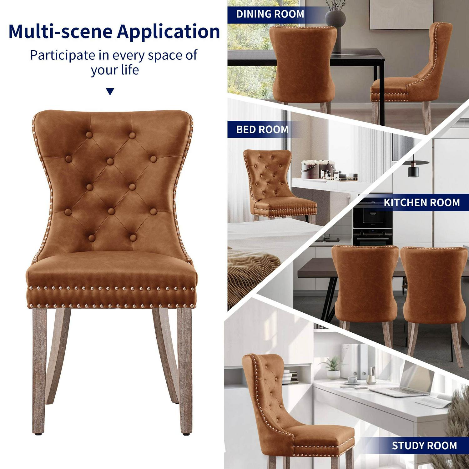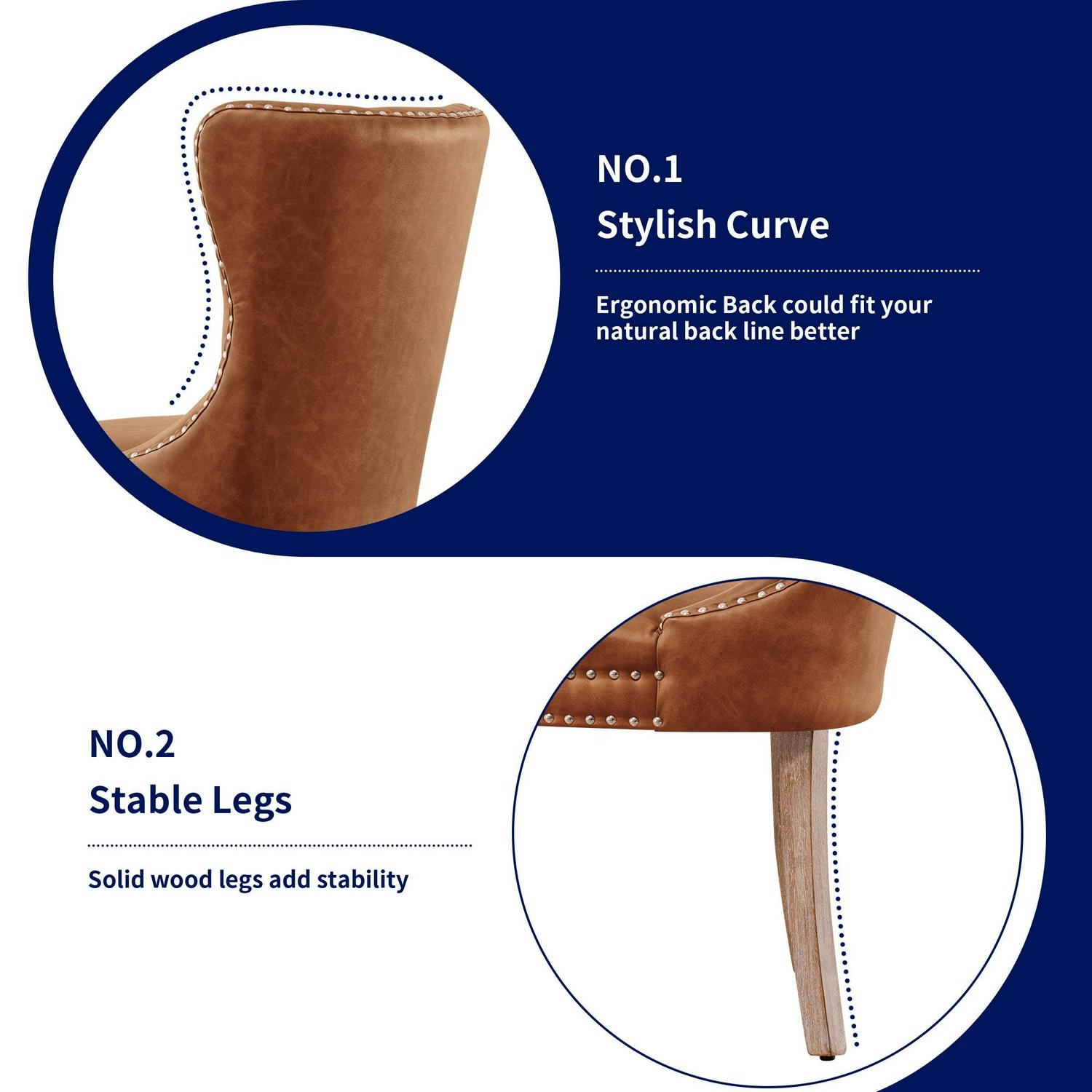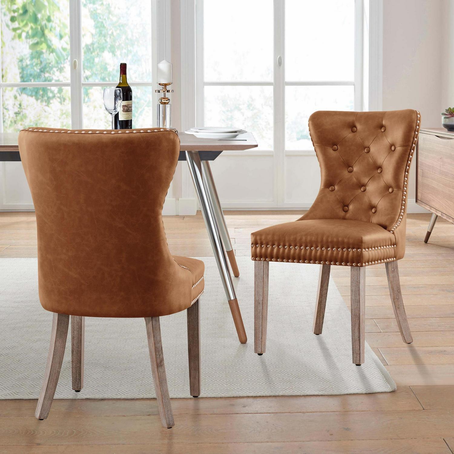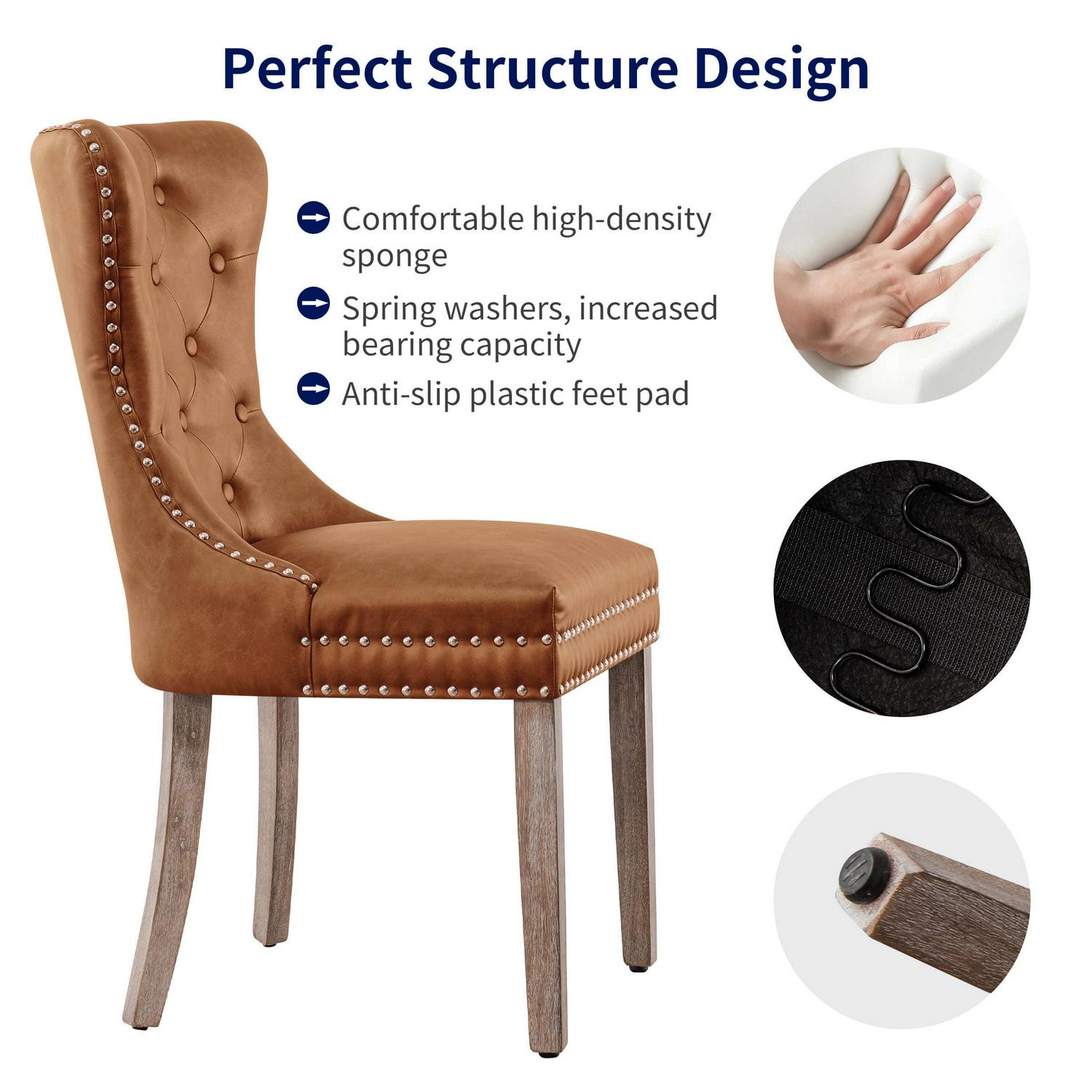 Subrtex Dining Chairs PU Leather Chairs with Wood Legs for Kitchen Dining Room Set of 2, Brown