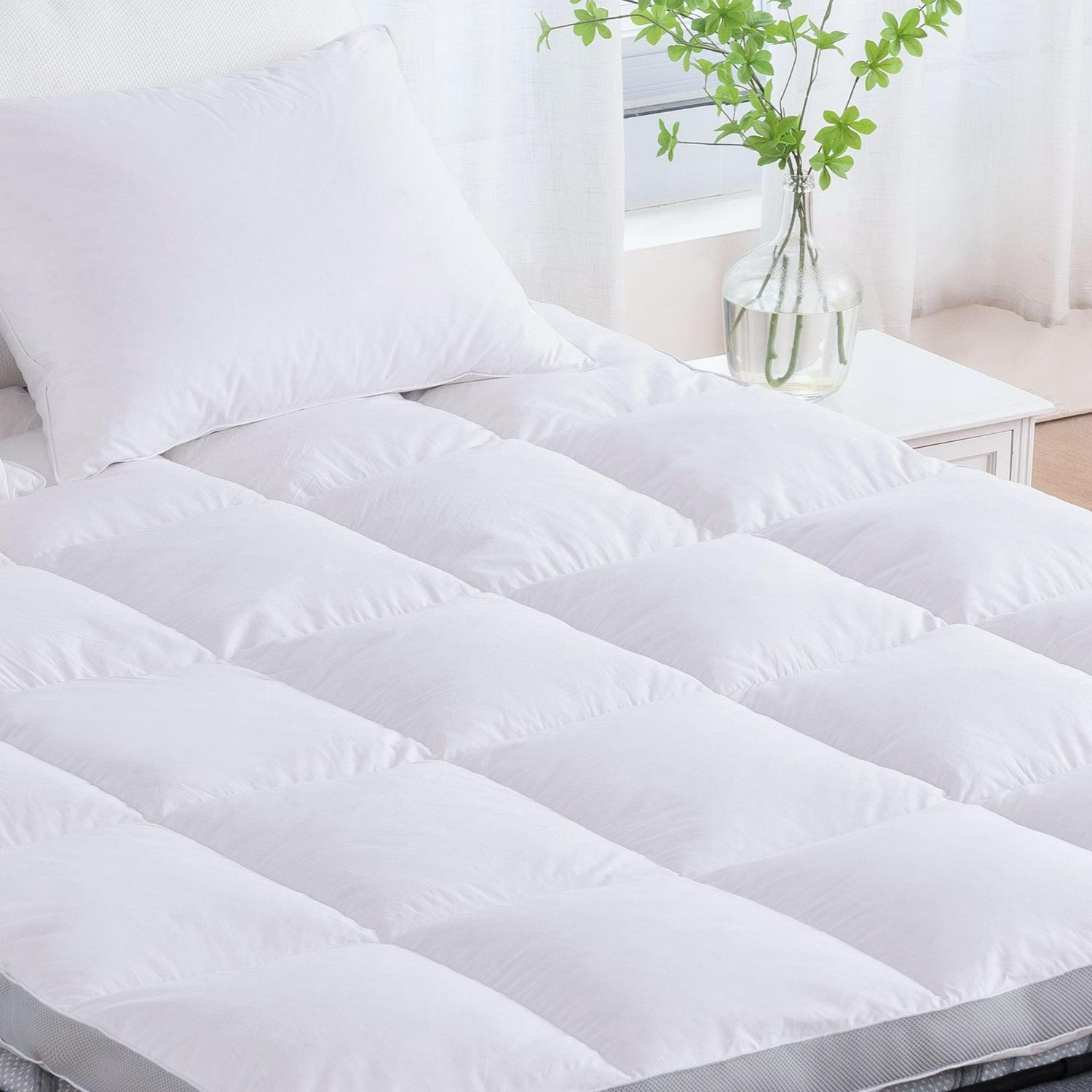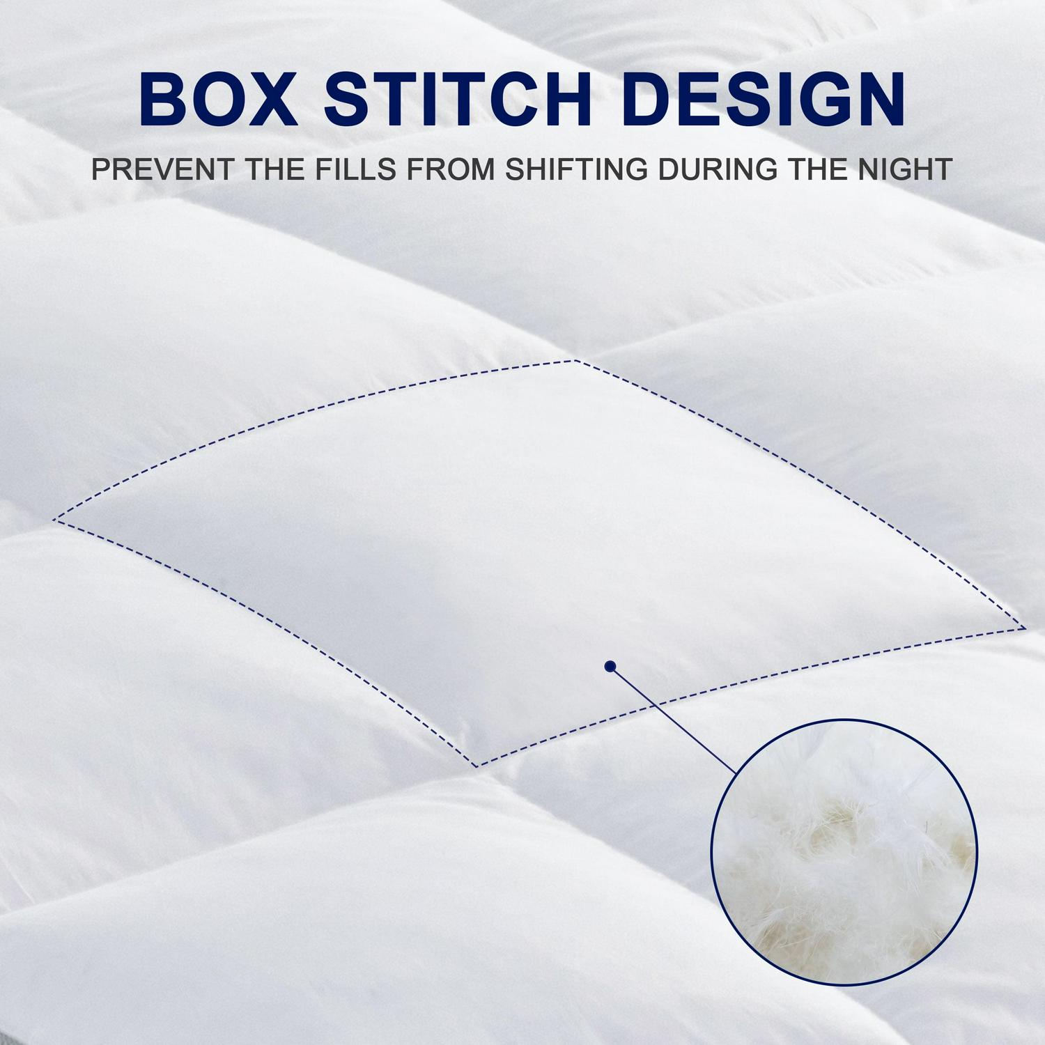 – [Thoughtful Design] Box stitch design prevents the down and feather from shifting during the night; The airflow design on the side of the topper, brings you a breathable feeling.