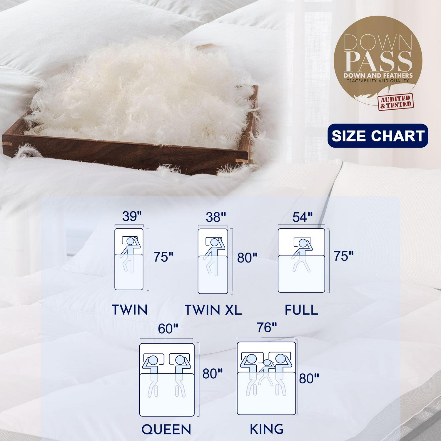 – Material: super comfortable 100% cotton cover; 5% down and 95% feather fill