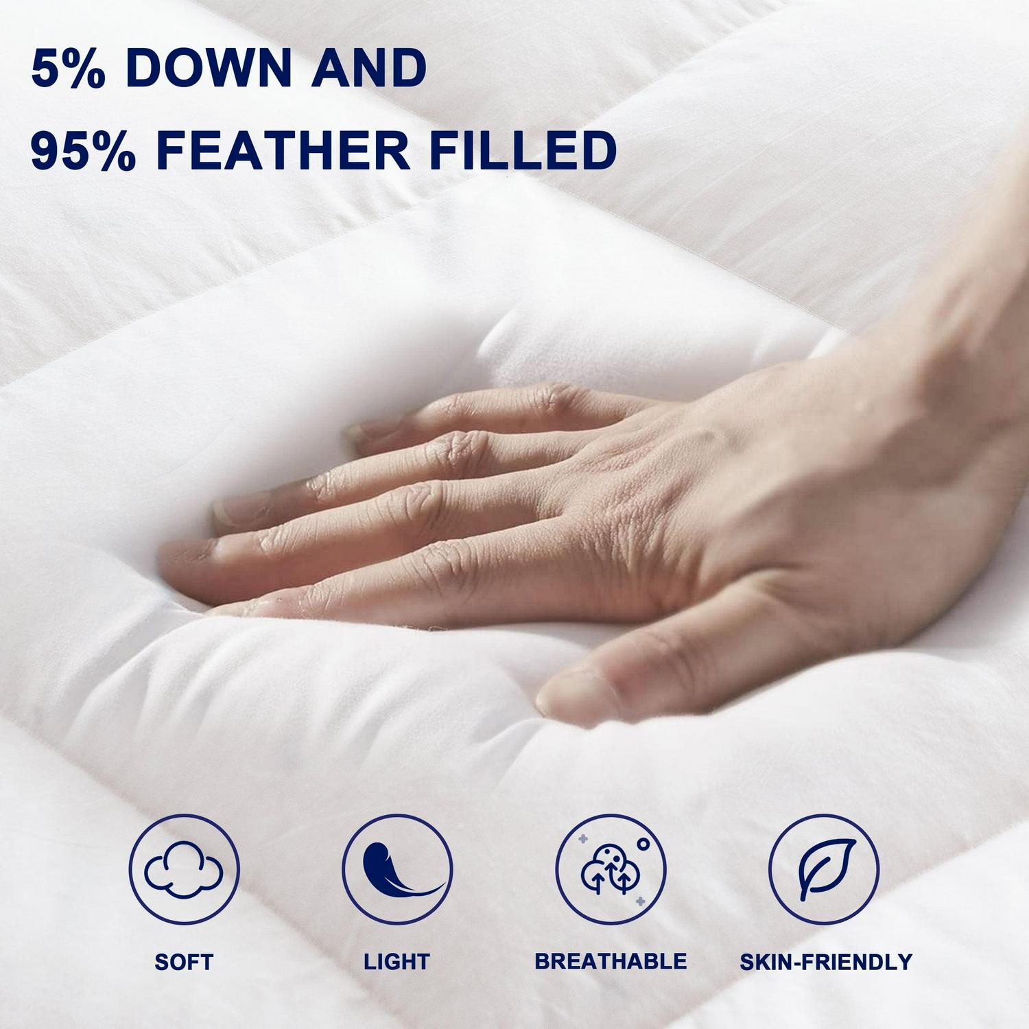 – [Soft Filling] 5% down and 95% feather filled, soft, warm and wrapped, like relaxing on a cloud of comfort.