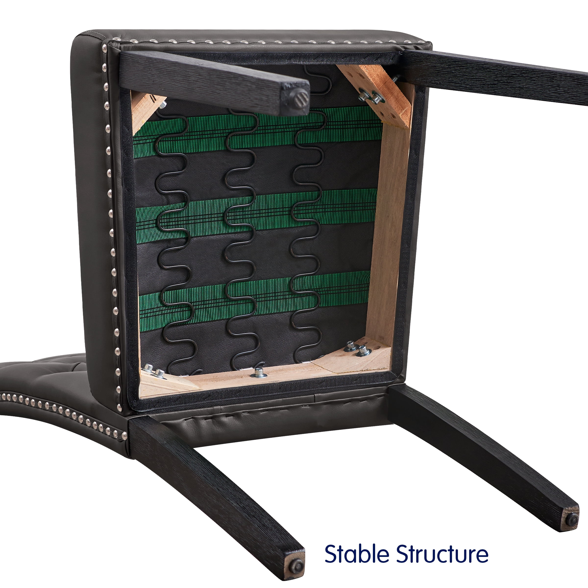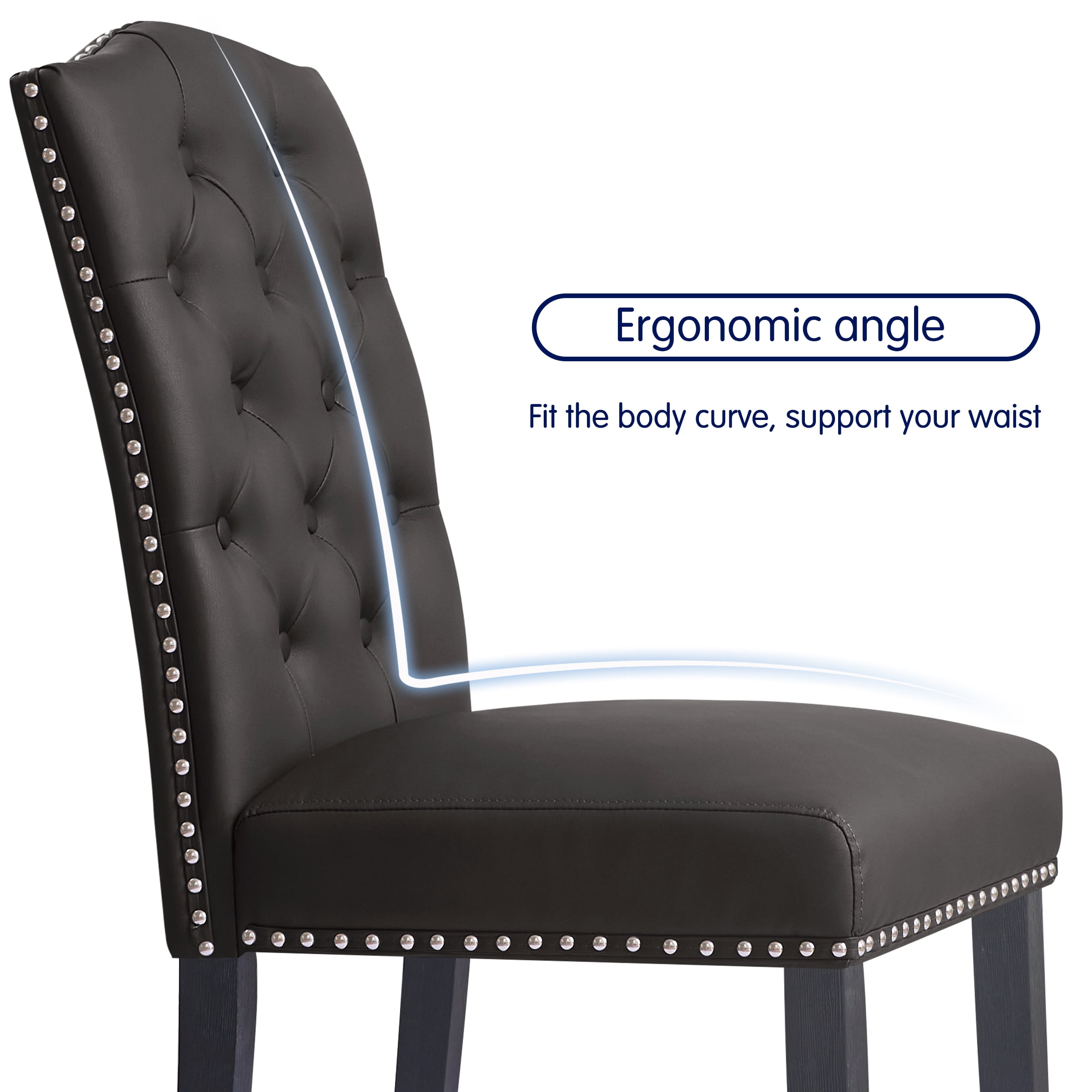 Subrtex Upholstered Dining Chairs Set of 2, PU Leather Dining Chair with Nail heads Trim, Button Padded Chairs Set for Kitchen Dining Room, Gray