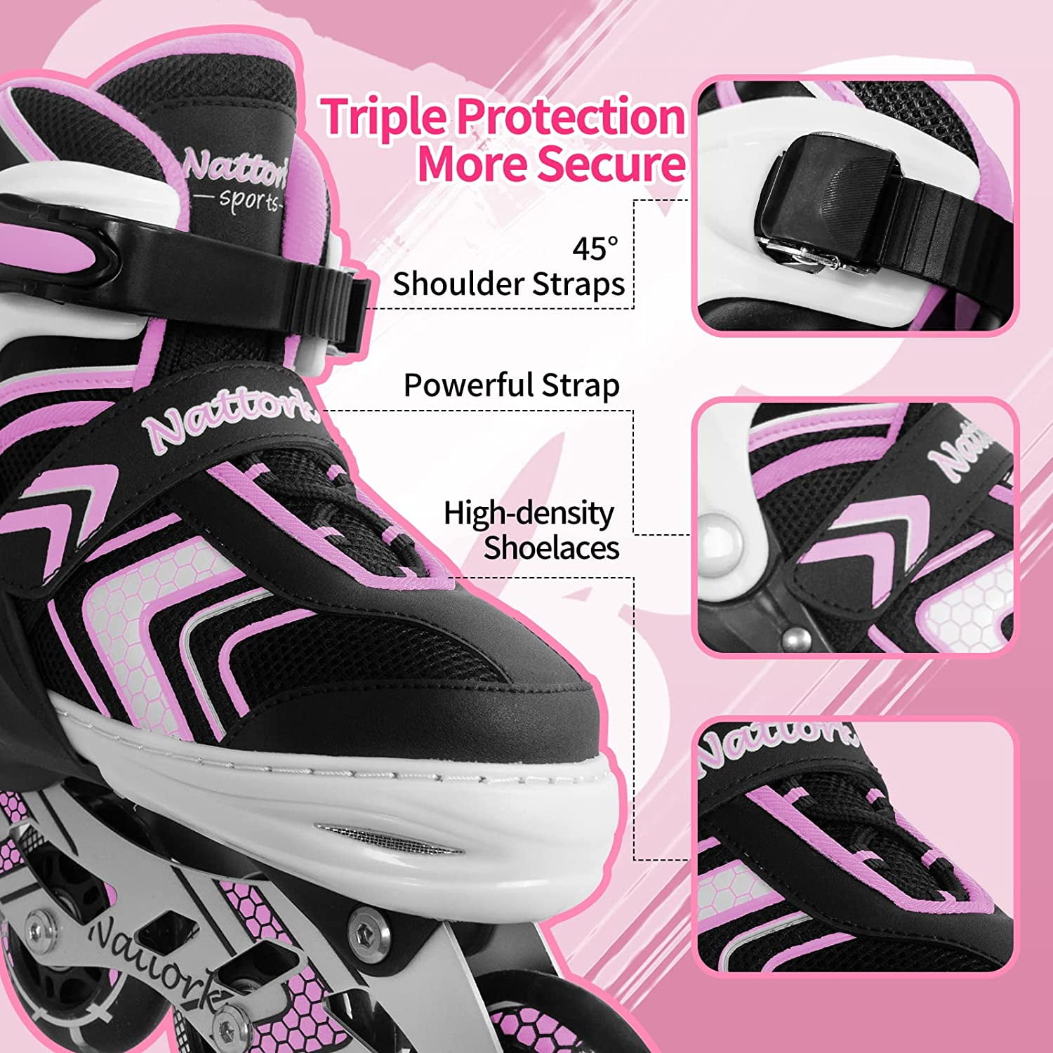 SubSun Girls Inline Skates for Kids and Boys with Light up Wheels Pink Medium(1.5-4.5 US)
