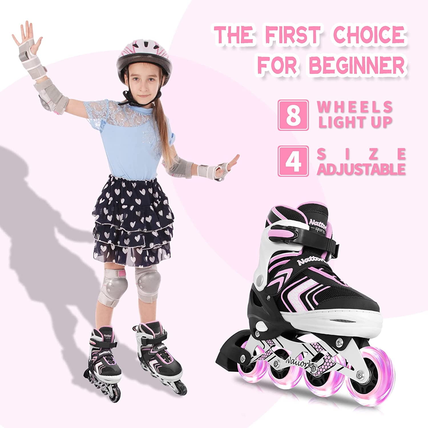 SubSun Boys and girls inline skates with 8 Illuminating wheels.Illuminating wheels that lights up automatically .The lights are powered by wheels rolling and never need replacement batteries! The inline skates for boys structure features an integrated thickened shell.Give skaters more stability and control.High-speed mute bearings are provide a more smooth ride.