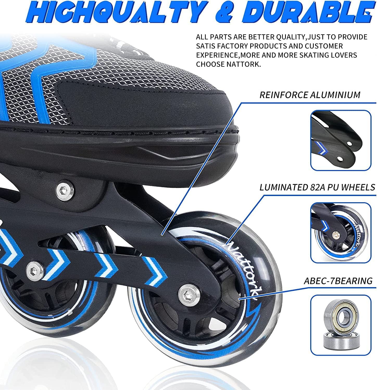 SubSun Inline skates lining is made of high quality cloth, which has a good inclusion and comfort. At the same time in the process of using roller skating has a good air permeability and sweat function, so that you have the ultimate roller skating experience.Adjustable Roller Skates for Kids with Light Up Wheel Illuminating Skate