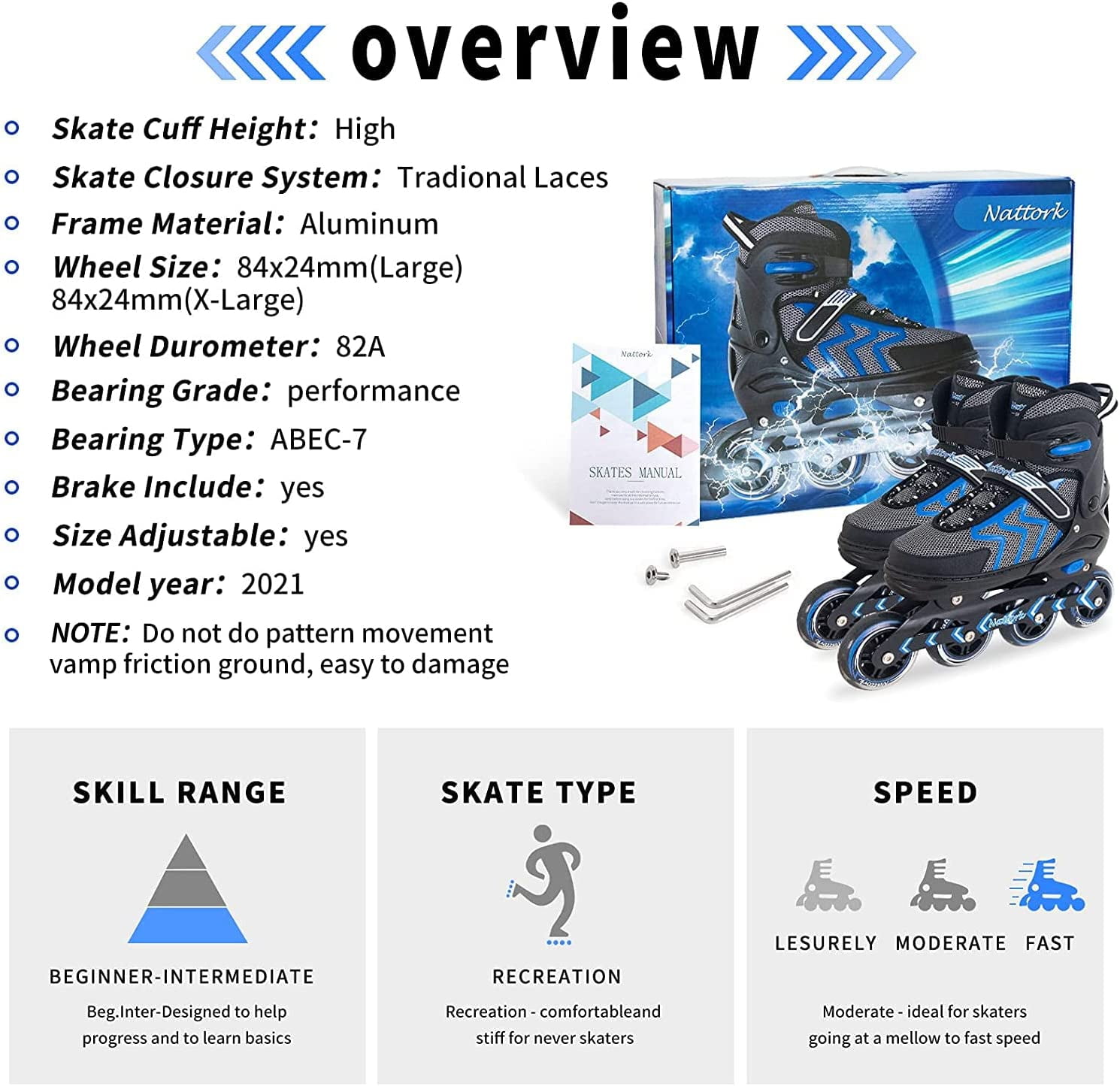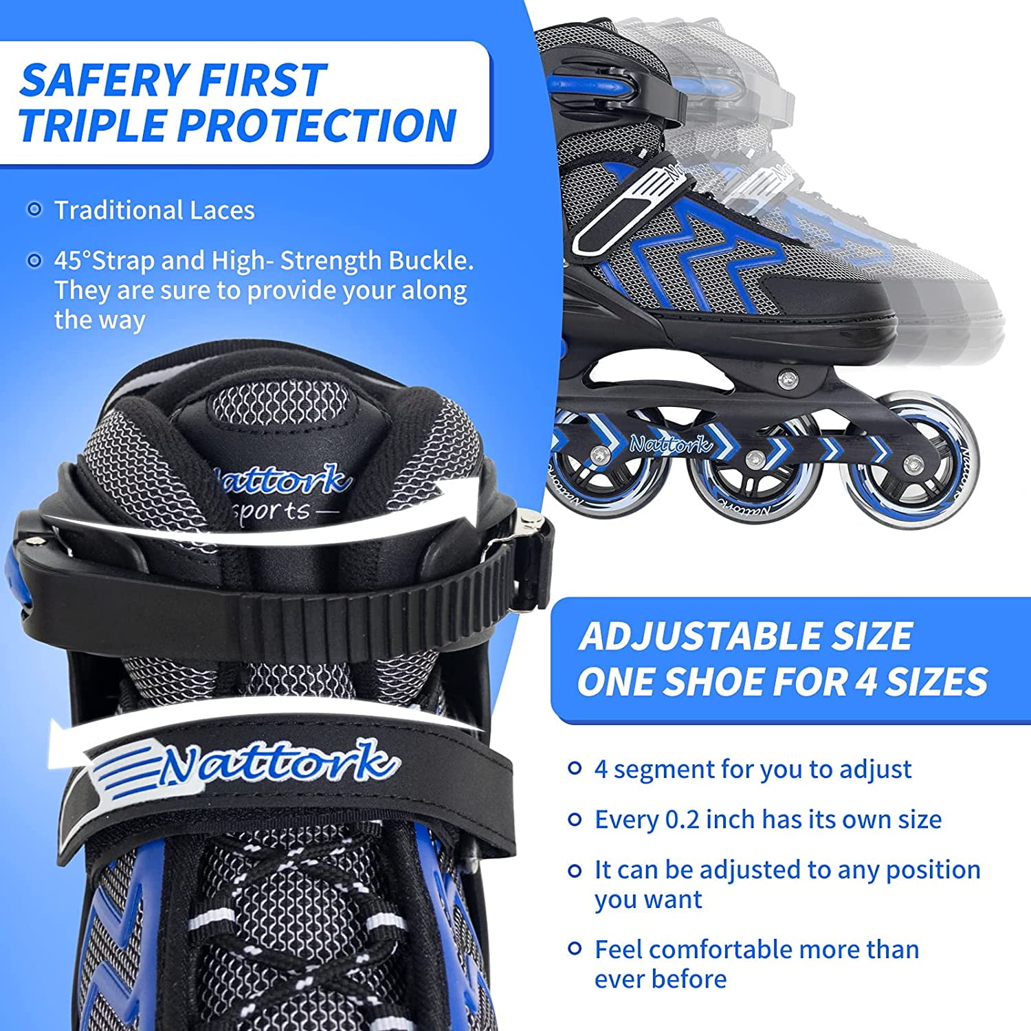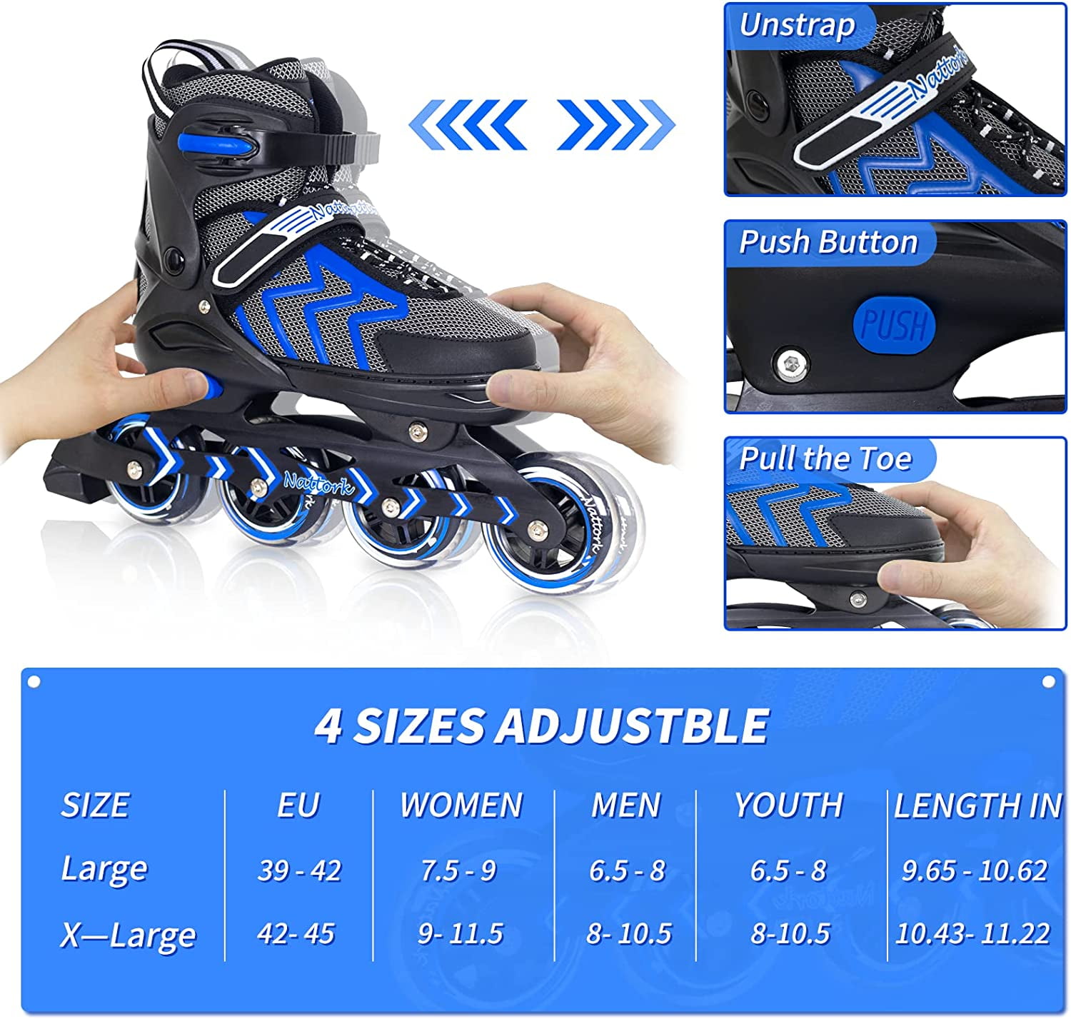 SubSun Inline skates are designed to cater to the needs of beginners and young skaters. With our provided size scale, you can easily adjust the skates to your desired size by simply pressing a button. Our inline skates feature a reinforced aluminum alloy frame, ensuring durability and stability. The 84*24mm 82A polyurethane wheels offer a smooth ride, while the high-speed mute ABEC-7 bearings, made of high-quality carbon steel, provide the ultimate speed experience. The shoes are crafted with a 3D mesh cloth surface, which promotes breathability. The soft lining has excellent sweat absorption capabilities, ensuring a comfortable and dry skating experience. Our skates provide triple protection for your safety. The combination of laces, 45° shoulder straps, and a high-strength clasp ensures secure ankle support and protection during your glide. At SubSun, we have full confidence in the quality of our roller blades. If you are not satisfied with our product, we offer a 30-day refund policy. Additionally, we provide a lifetime replacement warranty. If you have any questions or concerns, our dedicated customer service team will happily assist you, resolving any issues within 24 hours. Your satisfaction is our top priority!