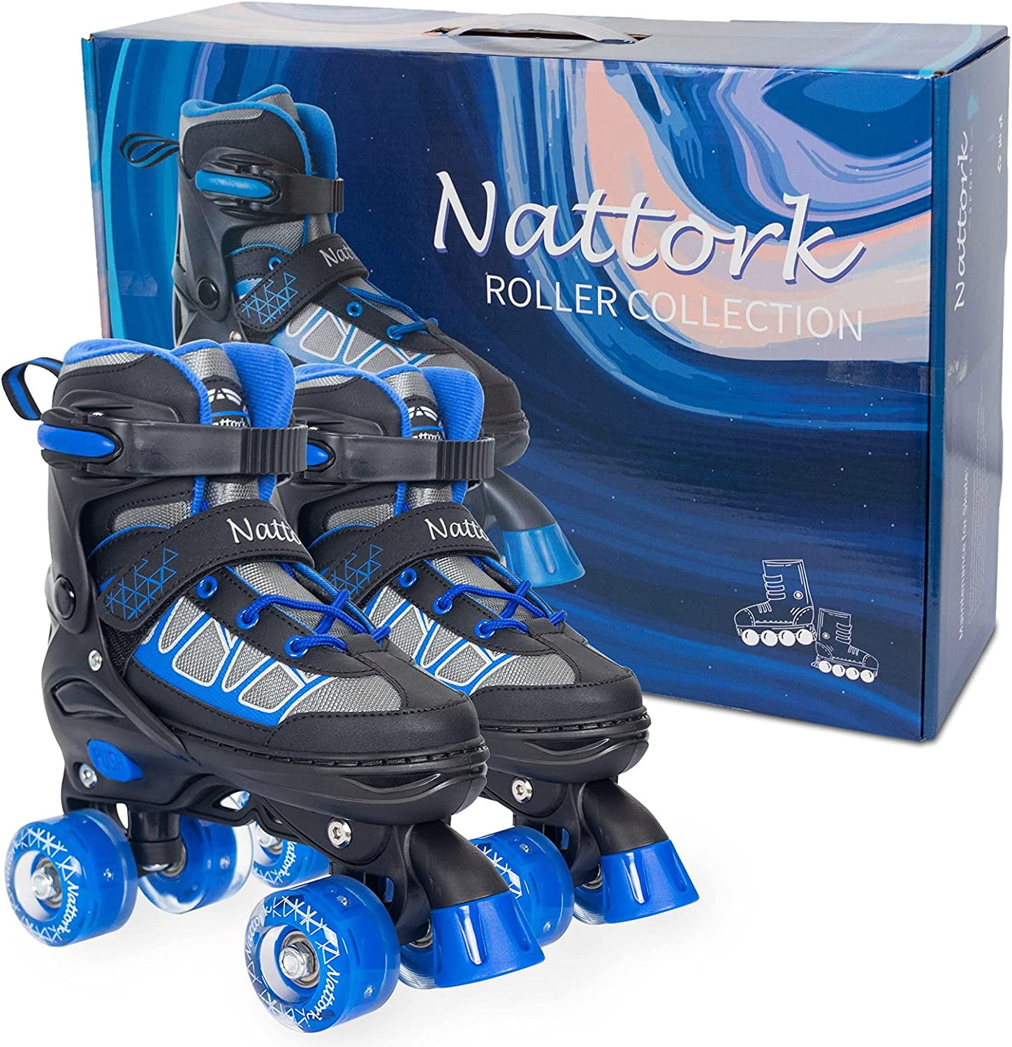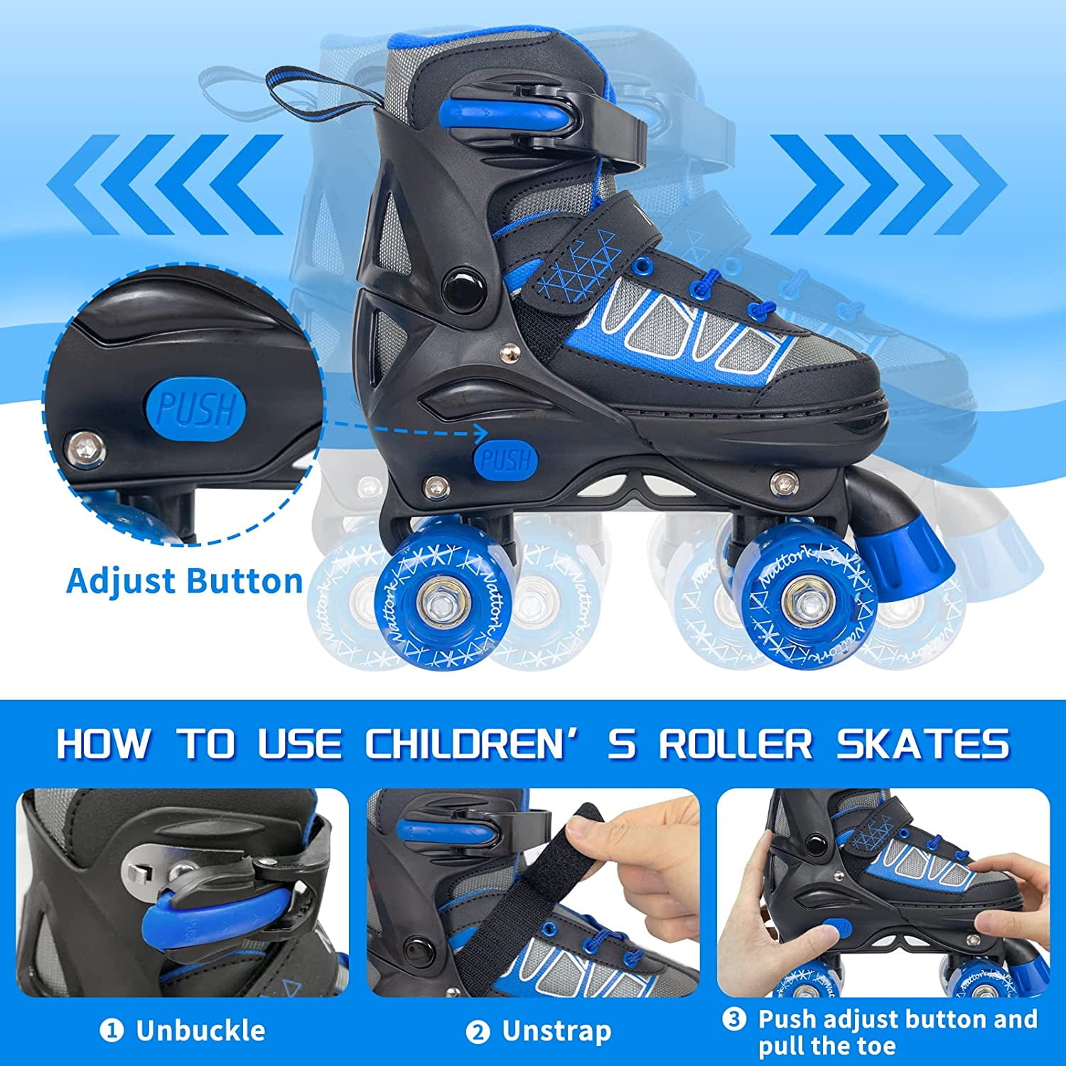SubSun Kids Roller Skates for Boys and Girls 4 Size Adjustable Light Up Wheels Blue Size M