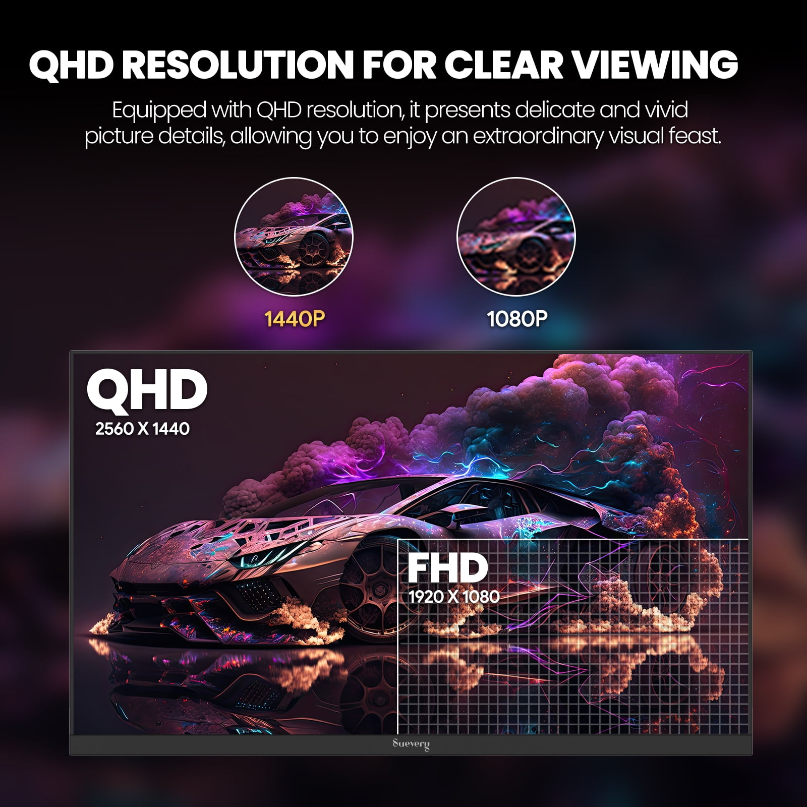 🏅Suevery27 Inch 2K/144Hz Gaming Monitor-Excellent Picture Display Suevery 27” monitor features a flat display, with 144Hz high refresh rate and QHD(2560x1440P) resolution. The IPS panel is used to make the picture quality more vivid and clear. Free sync technology can effectively reduce screen tearing, and the 1ms response time provides users with a silky-smooth gaming experience. It comes with HDMI and DP ports to simplify your setup and increase your work efficiency through convenient connectivity.