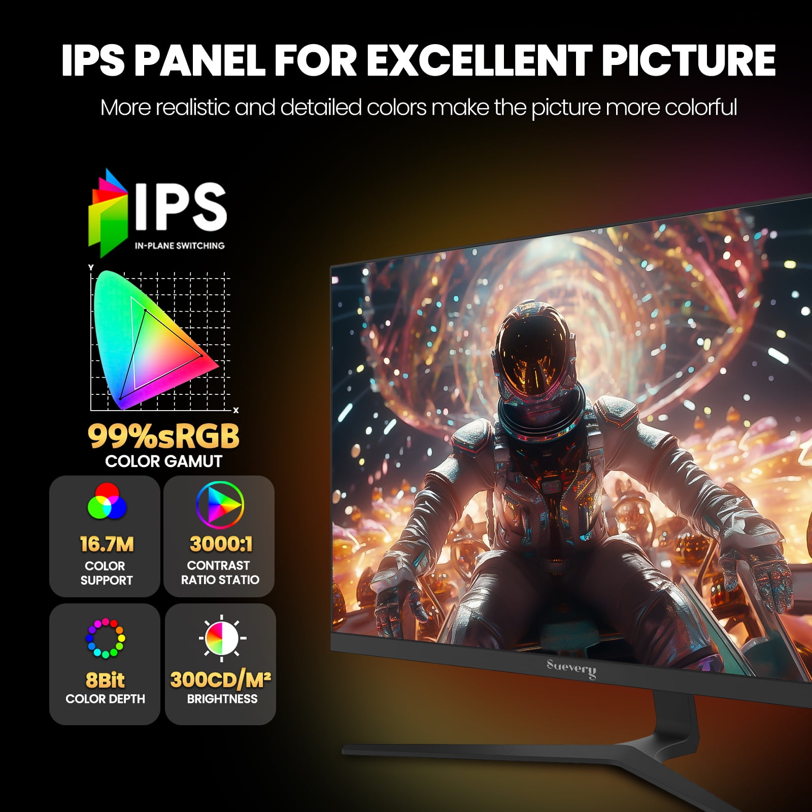 Suevery 27″ Gaming Monitor, 144Hz IPS, QHD/2560x1440p, 99 sRGB, Ultra-Thin, HDMI/DP, Black