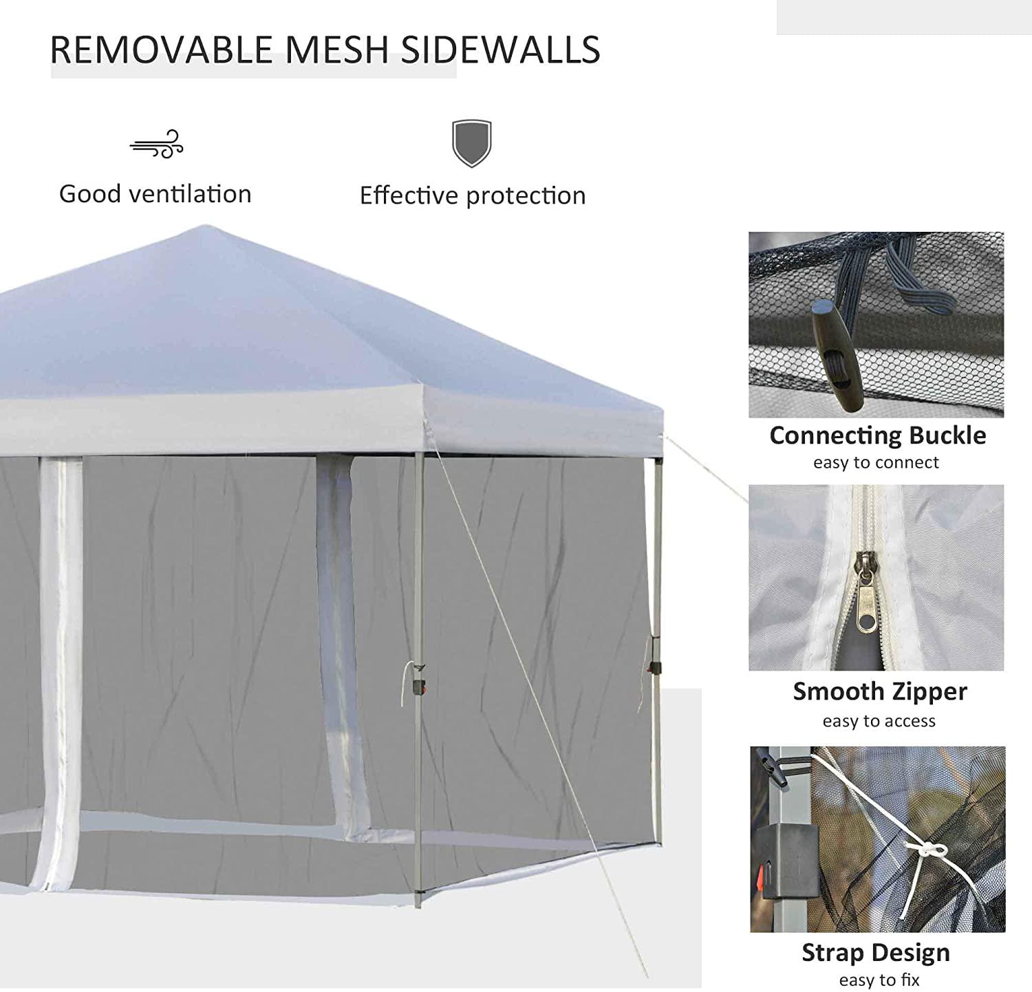 - Features: SUGIFT 10′ x 10′ White Gazebo Pop Up Canopy w/ Mesh Curtains