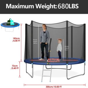 SUGIFT 10ft Trampoline with Safe Enclosure Net 680 lbs Outdoor Fitness Trampoline, Blue
