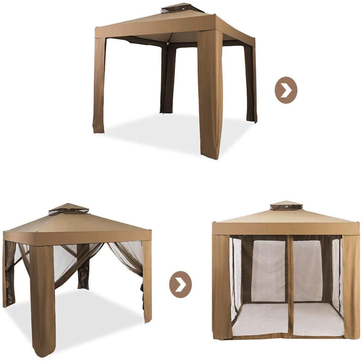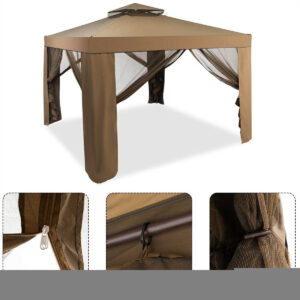 SUGIFT 10’x10′ Outdoor Gazebo Patio Tent Garden Canopy Shelter W/ Netting, Brown