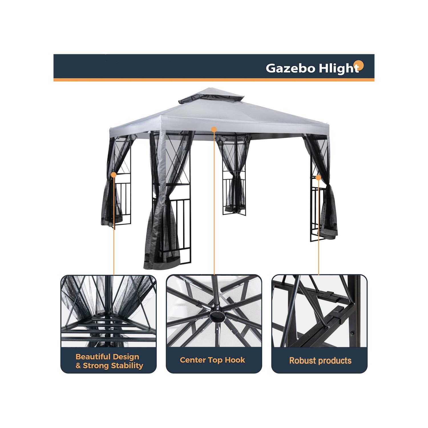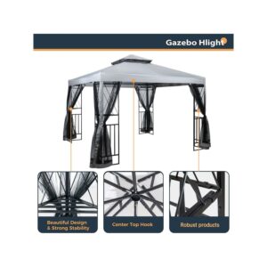SUGIFT 10x10ft Gazebo Gazebo with Mosquito Netting, Waterproof Metal Frame Gazebo for Backyard, Gray
