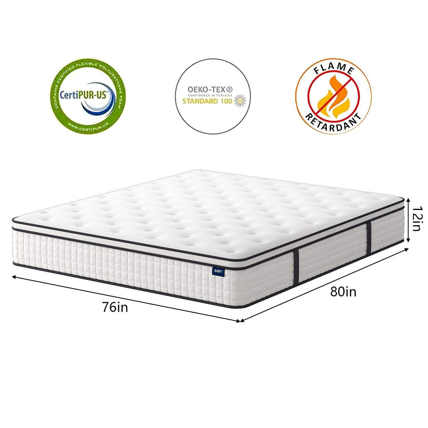 SUGIFT 12-inch queen-size gel hybrid spring mattress dimensions: 76″ x 80″ x 12″.