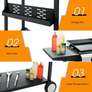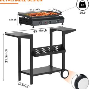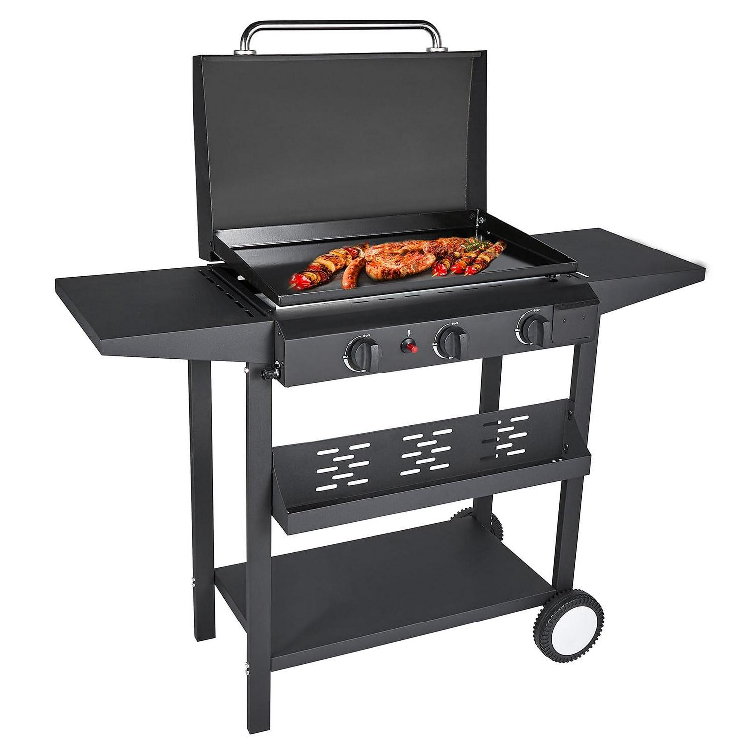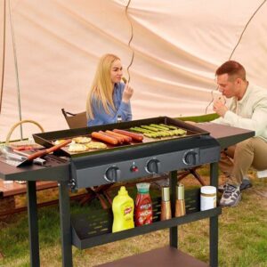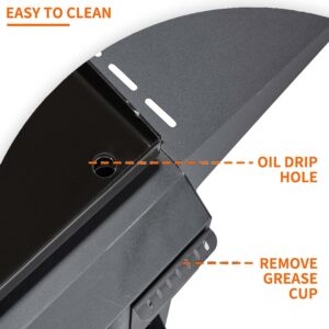 – CONVENIENT FEATURES: Our propane griddle features a hood to protect the griddle surface from the elements and eliminates the splatters and mess. Two side shelves can be your prep station to dice veggies, season your burger patties, and more.