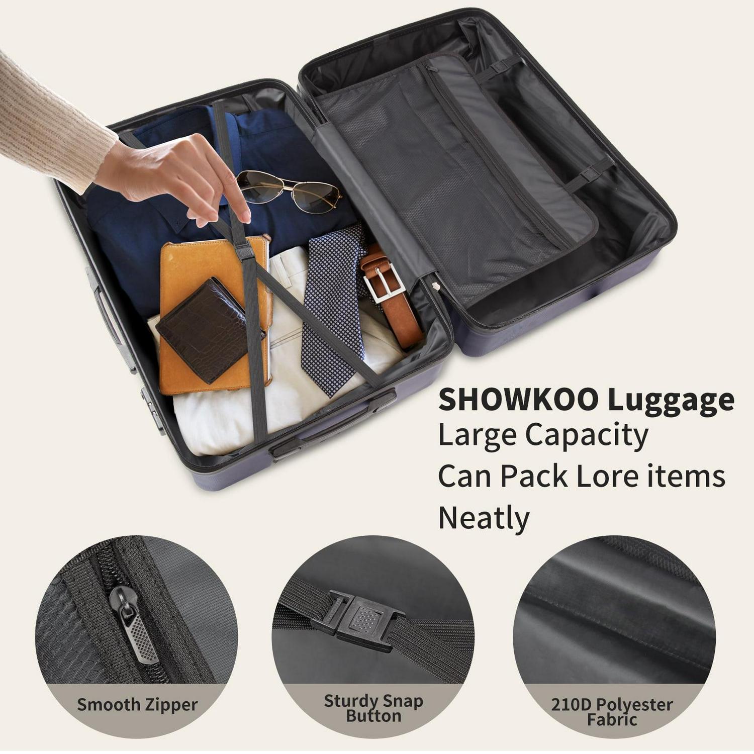 3 piece luggage set 20 inch,24 inch,28 inch upright, can be stored one into another.100% ABS, Lightweight yet extremely durable abs material.
