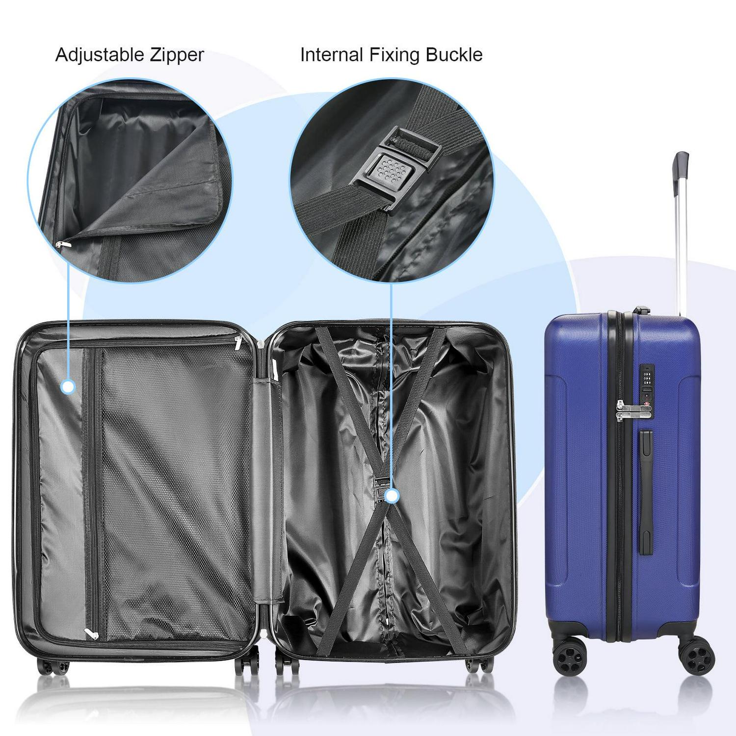– 2.[Top Quality Luggage Sets]: Made of brand new extra-thick PC+ABS materials for hard shell, which make the luggage more durable, lighter and impact-resistant. Features textured finish to prevent against scratches, keeping cases beautiful after a trip. 20in is best carry on luggage for airplane , 24in & 28in for more Spaces.