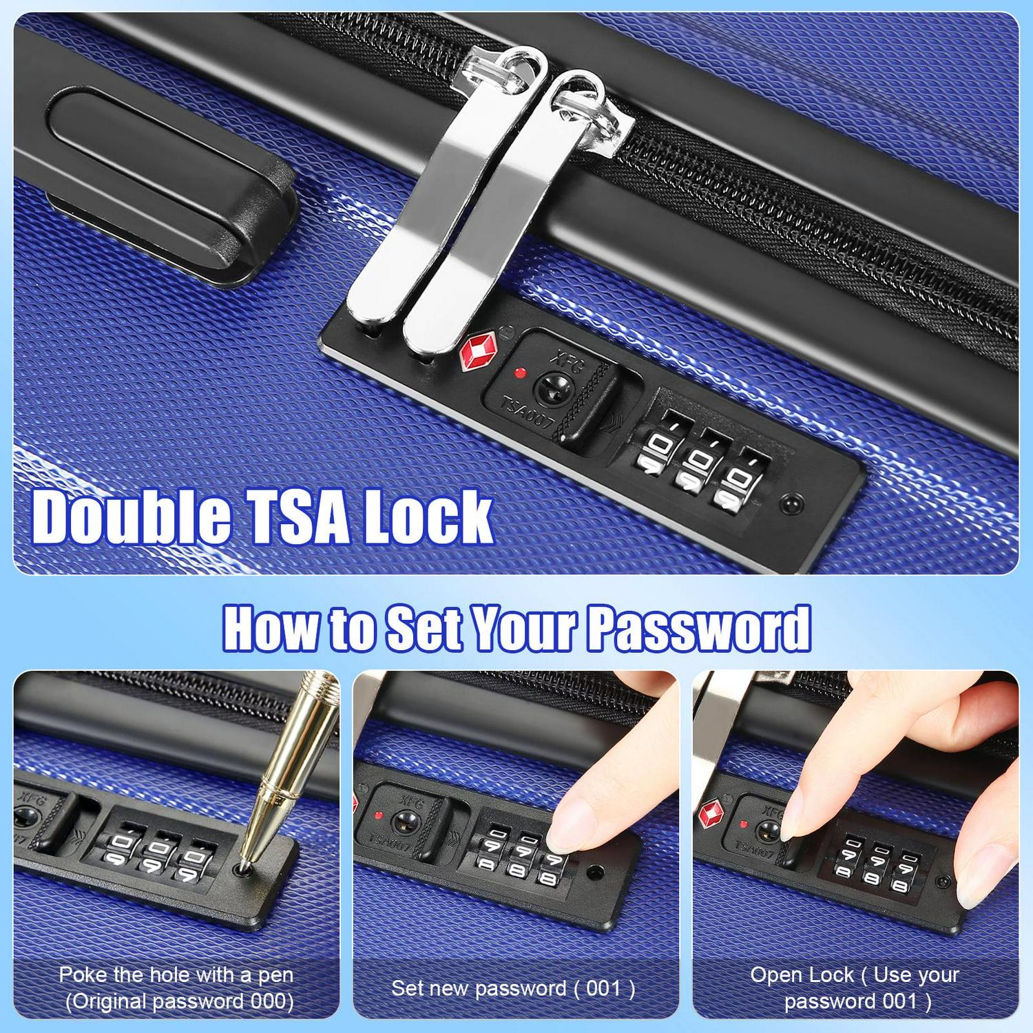 – Luggage with TSA Lock TSA customs password lock design to avoid violent damage to the luggage. which allows only TSA agents to inspect your bags without damaging the lock when traveling.Only TSA agent have the keys. Usually we use a digital code to open the lock.
