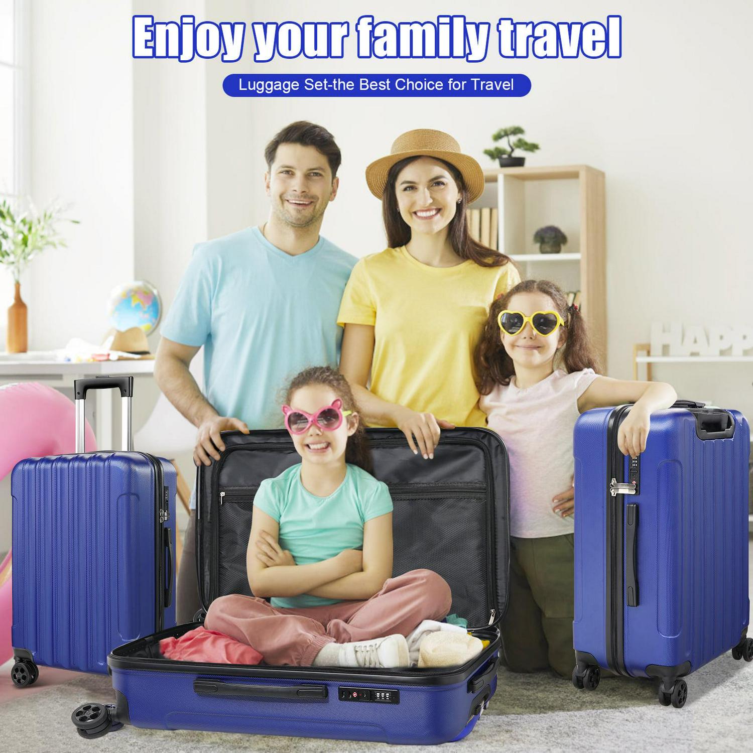 - Set includes one 20″, one 24″, and one 28″ suitcase