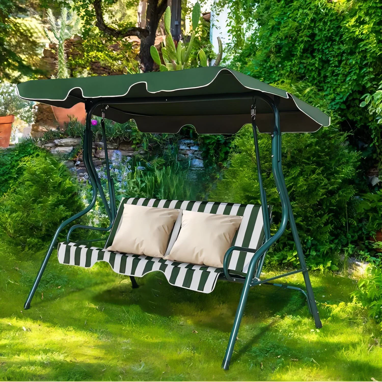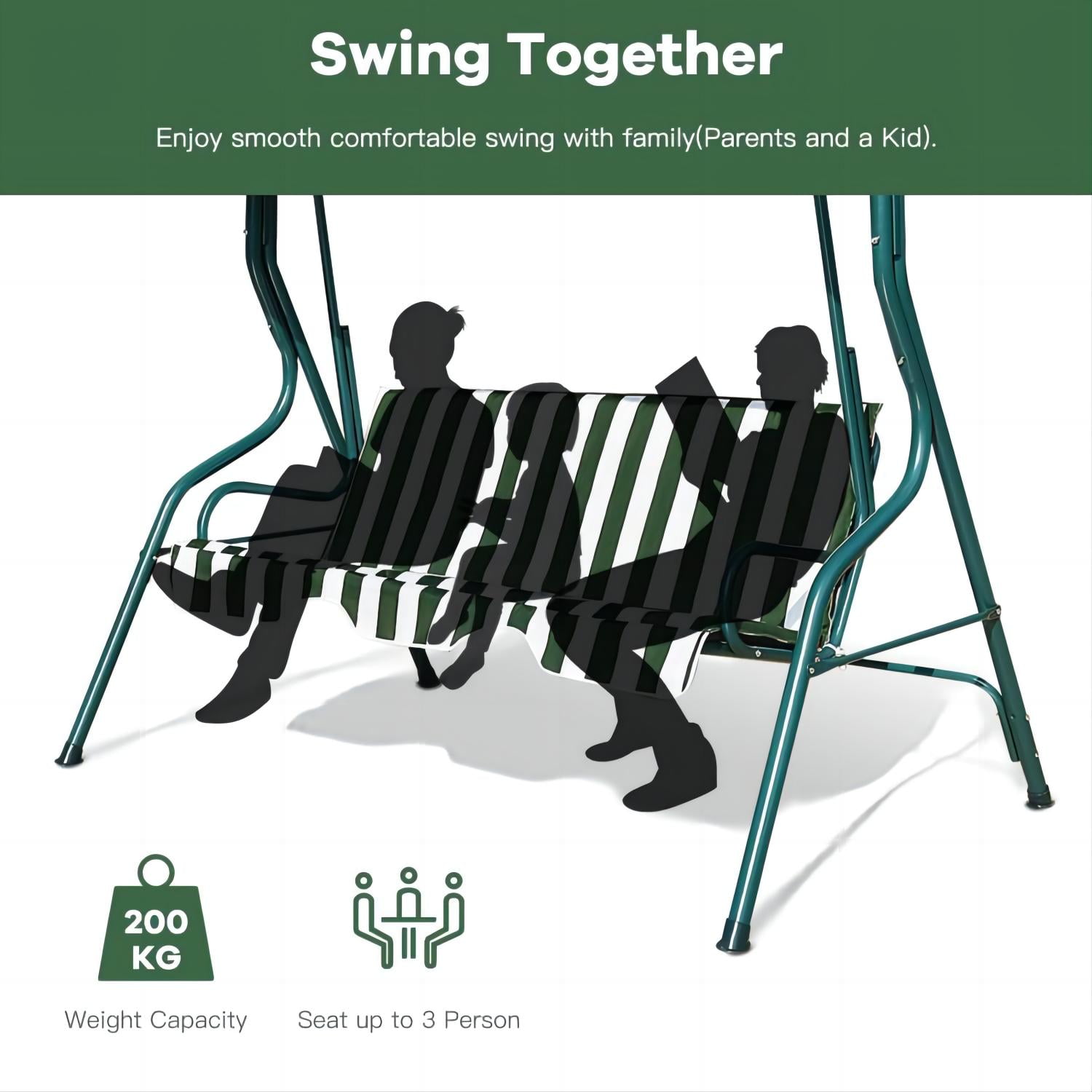 SUGIFT 3-Seat Patio Swing Chair,Outdoor Porch Swing with Adjustable Canopy and Durable Steel Frame for Patio, Garden, Poolside (Green)