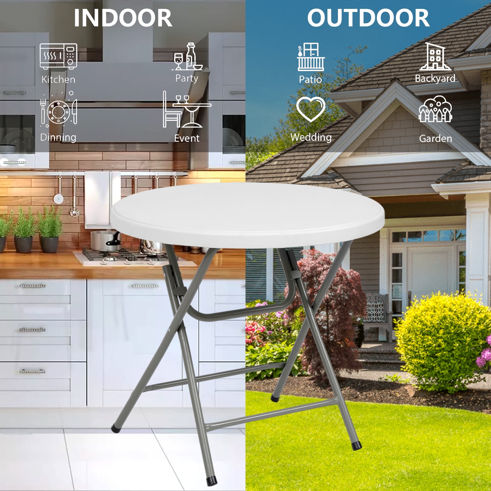 SUGIFT 32 inch Folding Table Round Plastic Table fot Indoor Outdoor, White