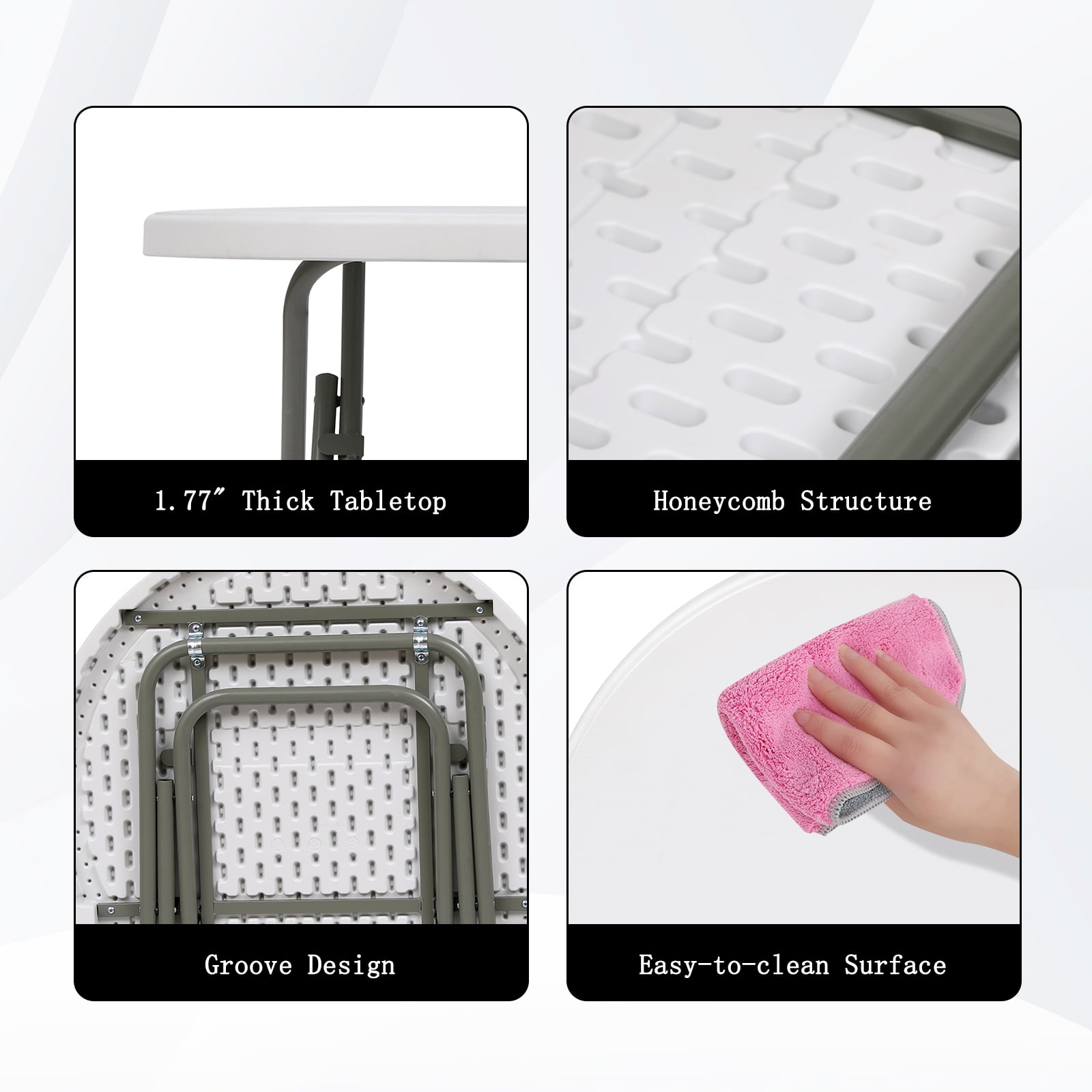 Convenient to clean the waterproof and stain-resistant HDPE tabletop Quick folding and lightweight design for easy storage and carriage Suitable for patio, lawn, poolside, dining room, study room, etc