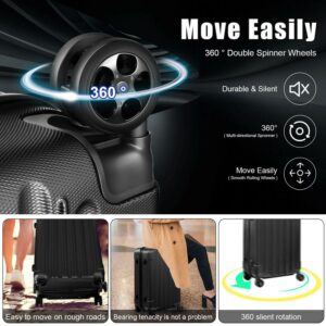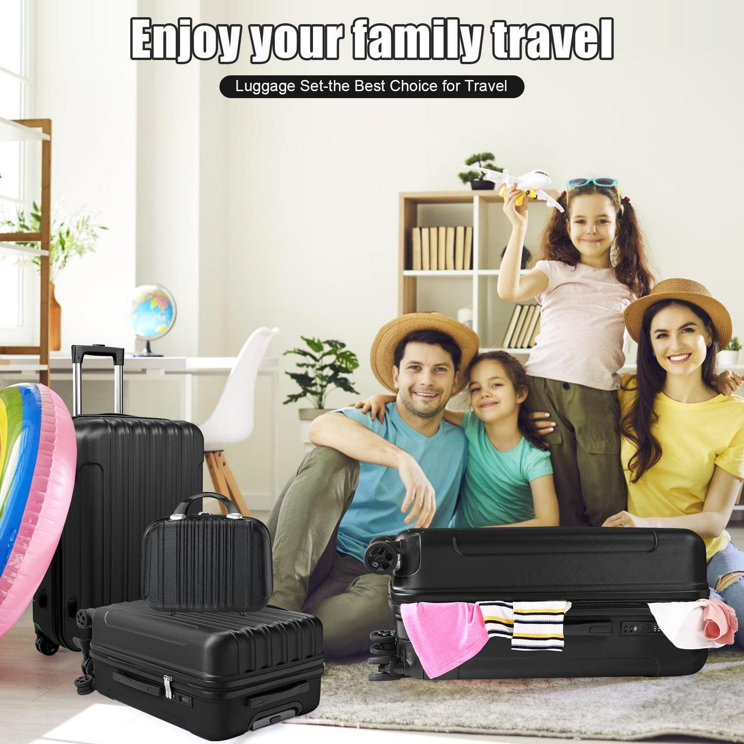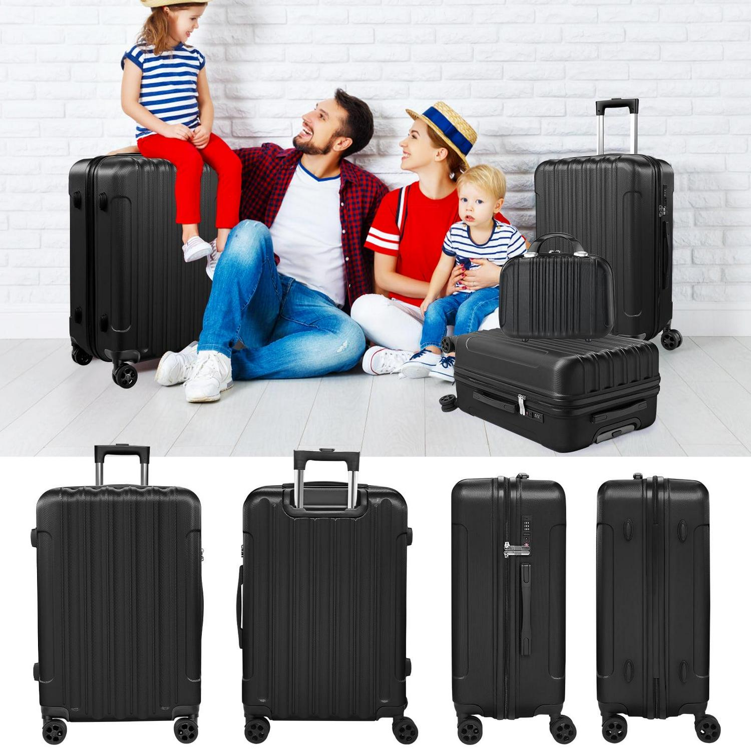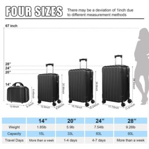SUGIFT 4 Piece Luggage Sets, ABS Hardshell Hardside with TSA Lock, Black