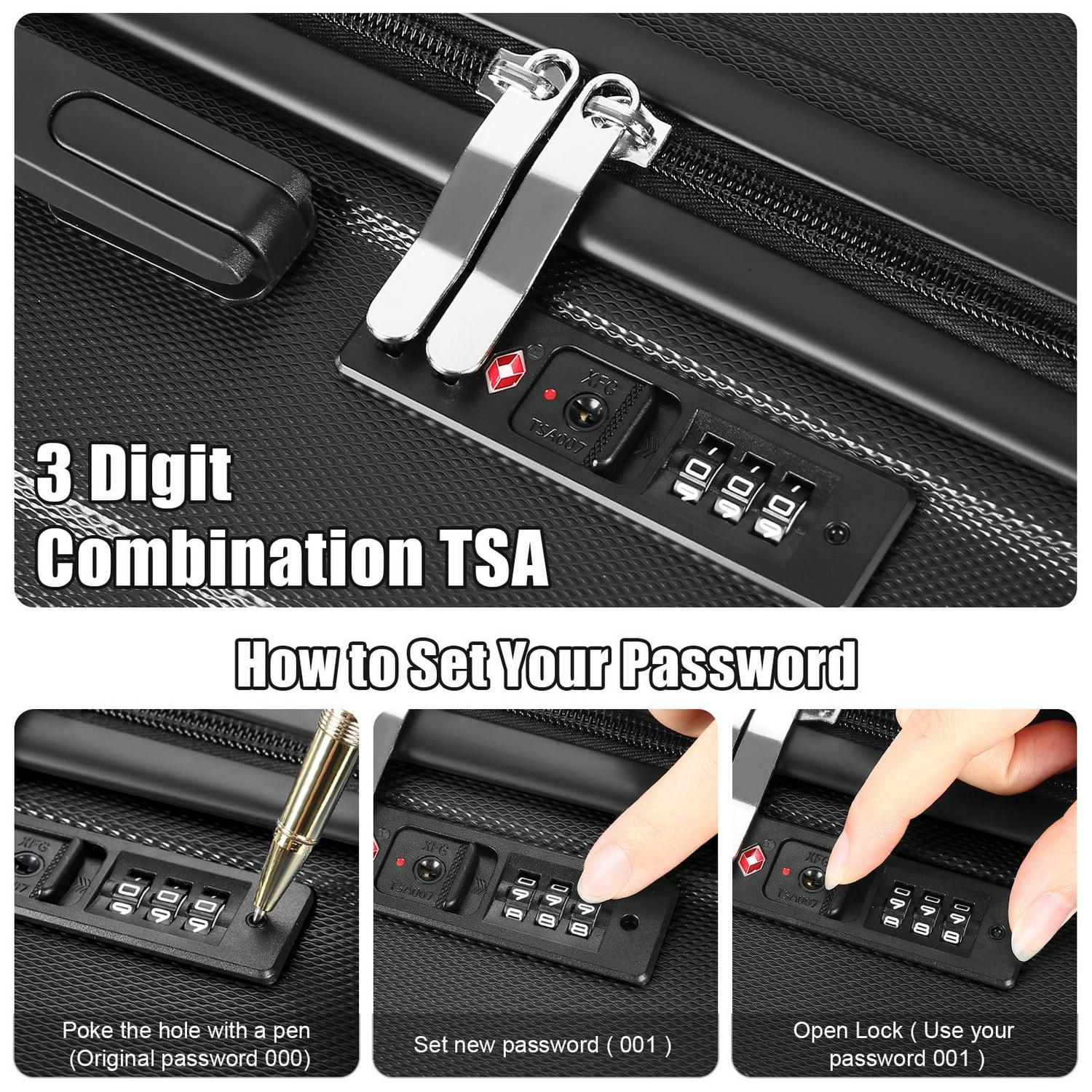 – Luggage with TSA Lock TSA customs password lock design to avoid violent damage to the luggage. which allows only TSA agents to inspect your bags without damaging the lock when traveling.Only TSA agent have the keys. Usually we use a digital code to open the lock.
