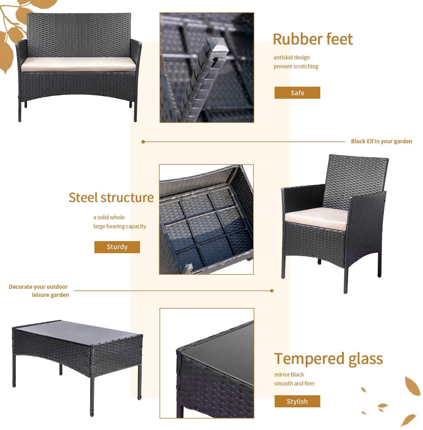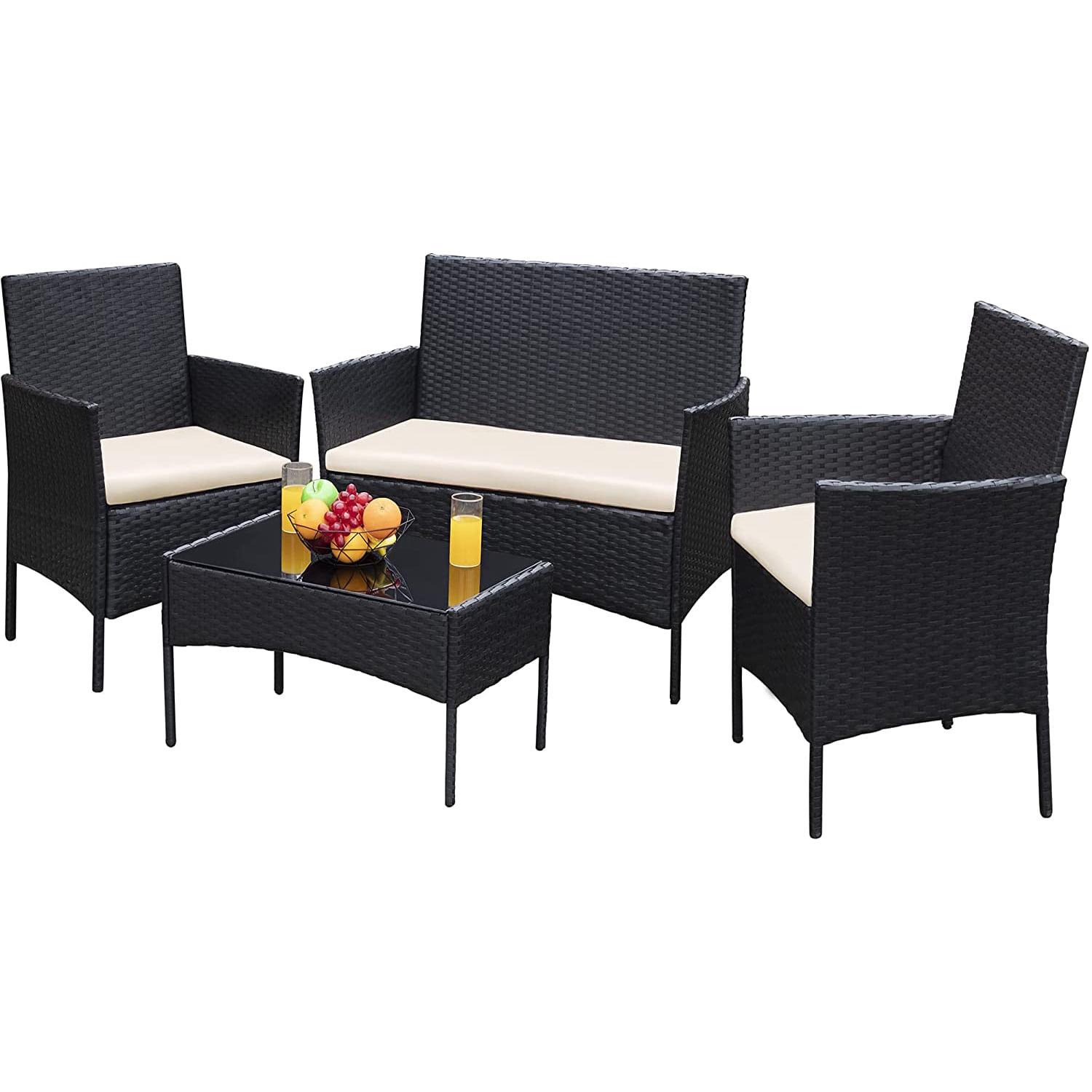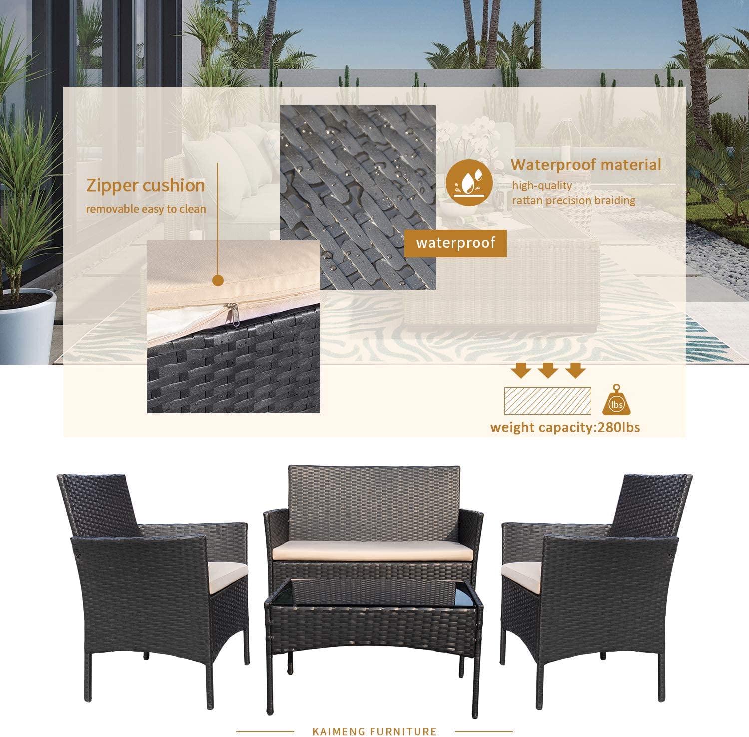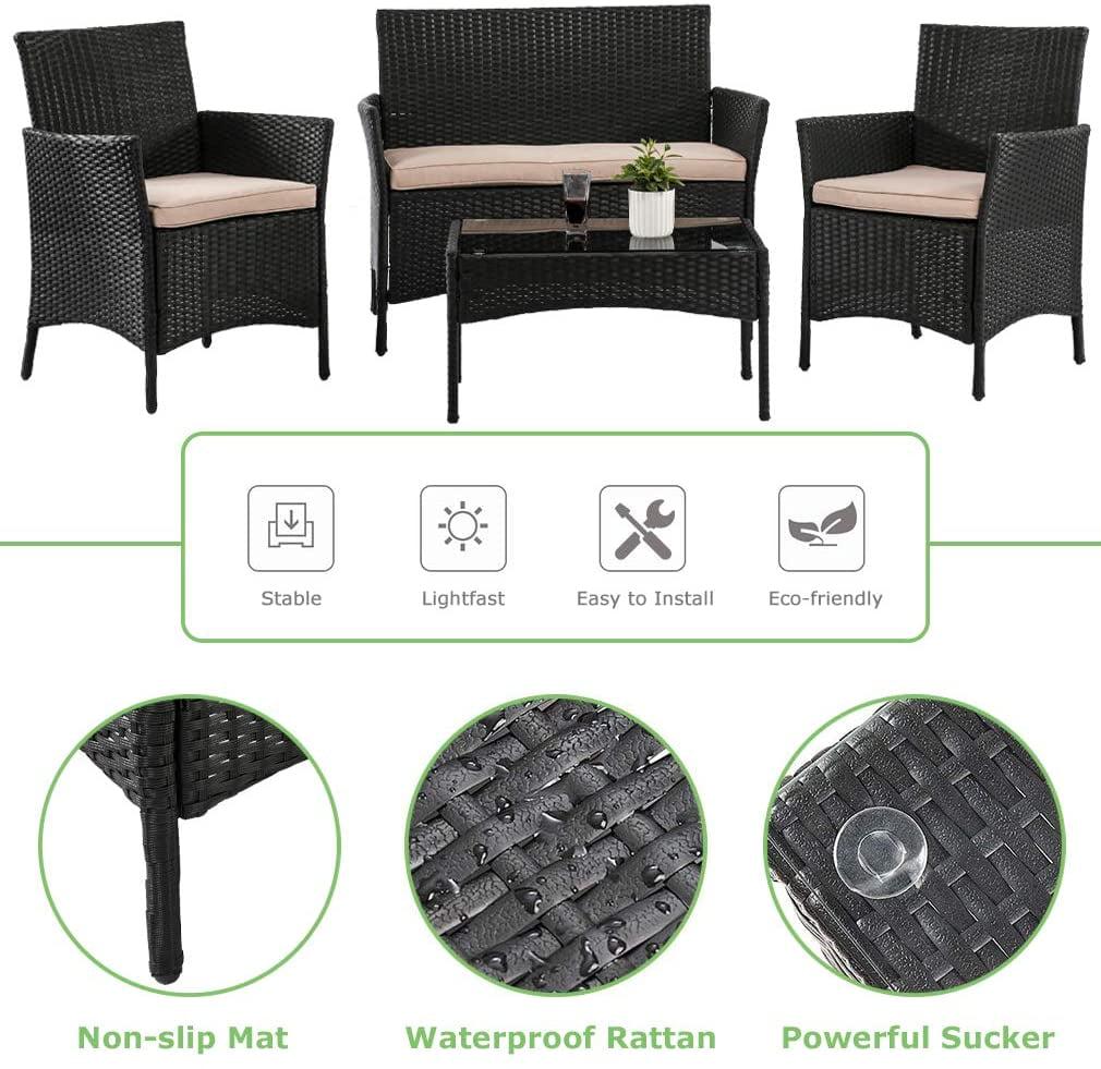 Traditional patio furniture is considered to be clunky,outdated, and unattractive, it’s time to replace them with our stylish and affordable wicker sets of high-quality construction. We have been working closely with our manufacturers on a variety of 4-piece wicker sets that are stylish, easy-to-maintain, and versatile enough as to fit most of the space.This SUGIFT 4-Piece Wicker Outdoor Patio Furniture set is made of strong steel frame with all weather PE rattan wicker. Excellent lounging choice for patio, porch, poolside or garden area. Easy assembly, no maintenance required, difficult to crack, split, rot, chip, fade or deteriorate.The cushion cover is also detachable.If you accidentally spill on your cushions or if dirt accumulates over time you can simply zip off the cushion covers and give them a quick wash to have them looking brand new.
