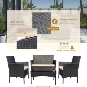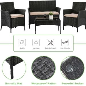 SUGIFT 4 Pieces Outdoor Patio Furniture Sets Rattan Chair Wicker Set