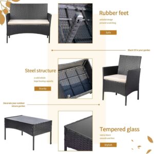 SUGIFT 4 PCS Outdoor Patio Conversation Furniture Sets with Cushioned Tempered Glass