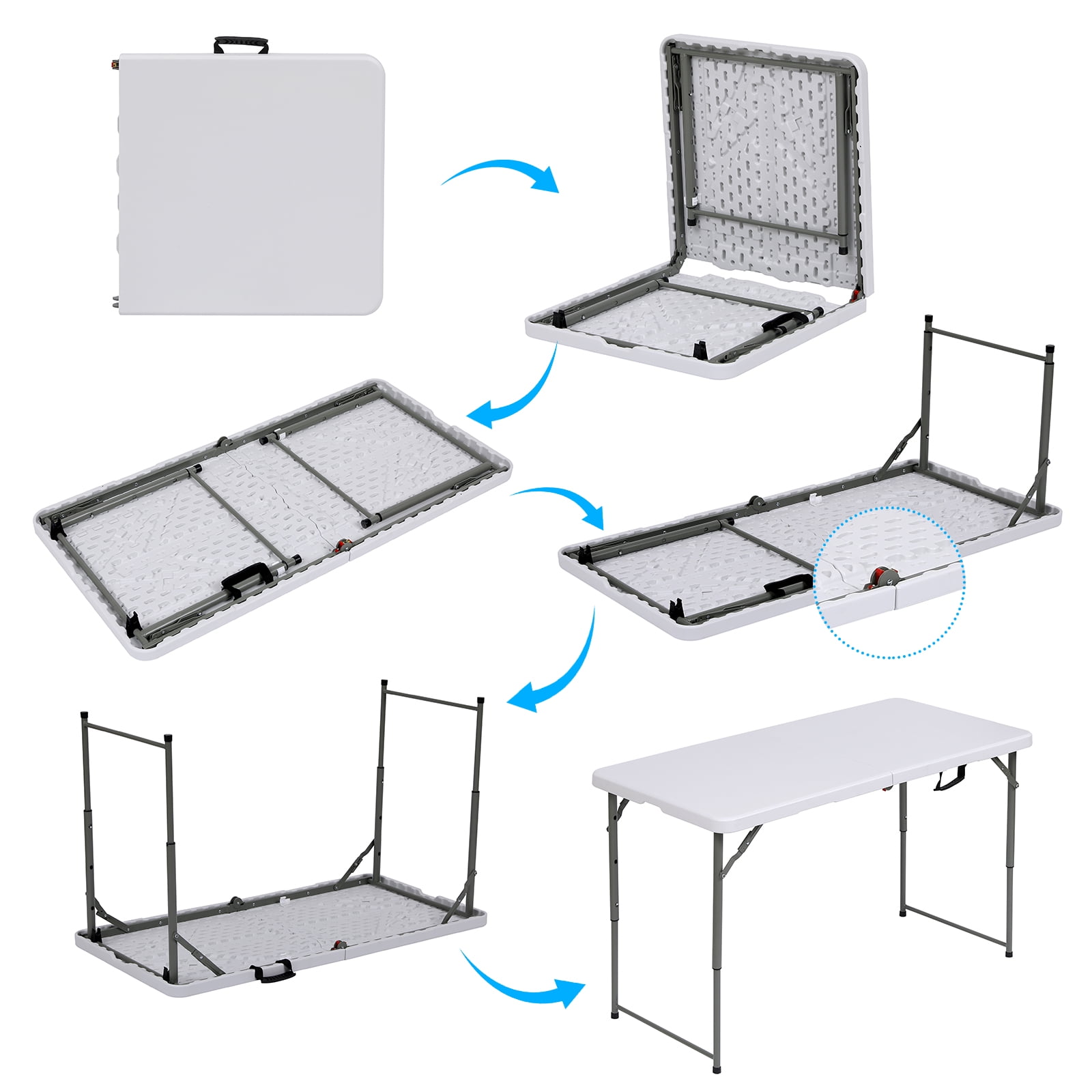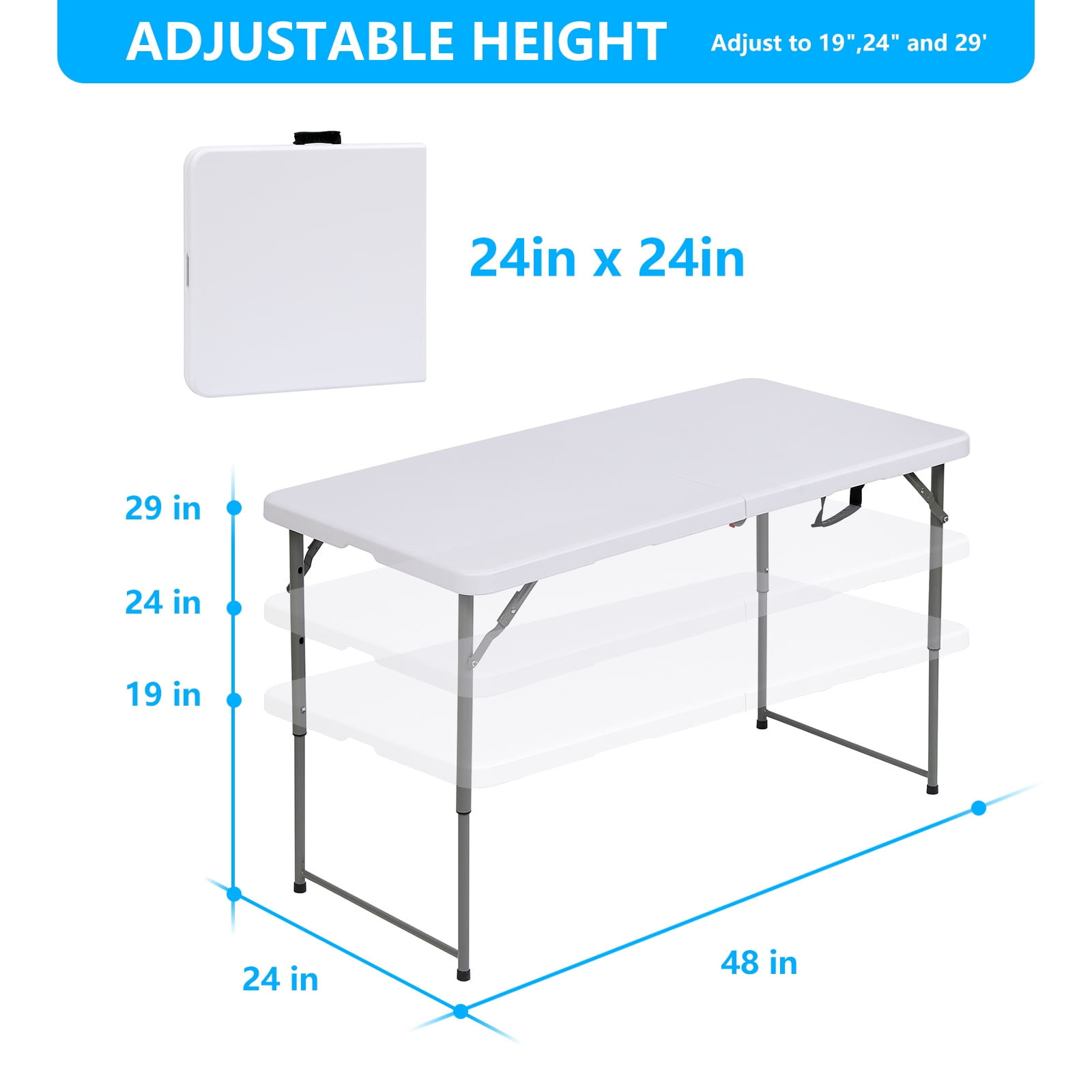 SUGIFT 4ft Folding Table, Adjustable Height Camping Table Office Table for Indoor/Outdoor Picnic Camping Bench,White