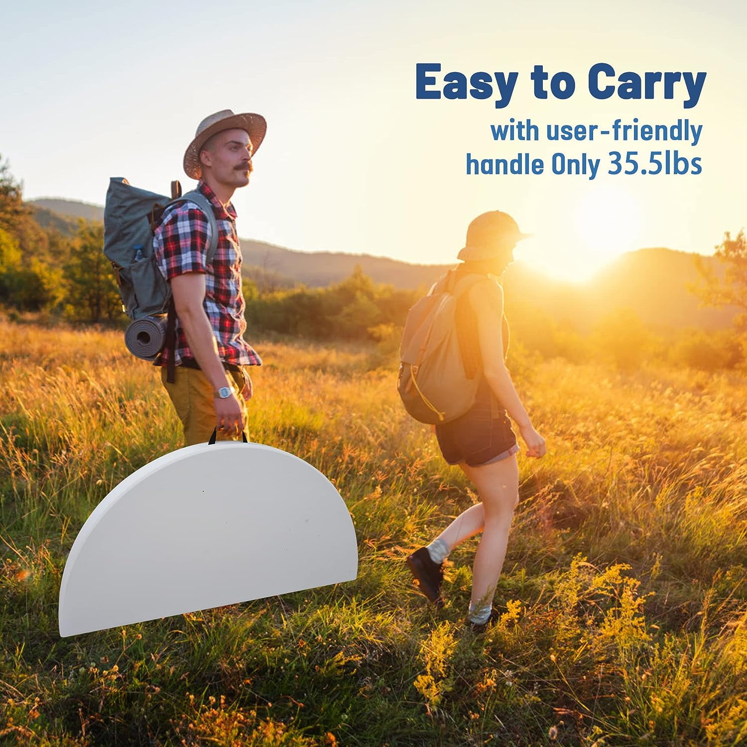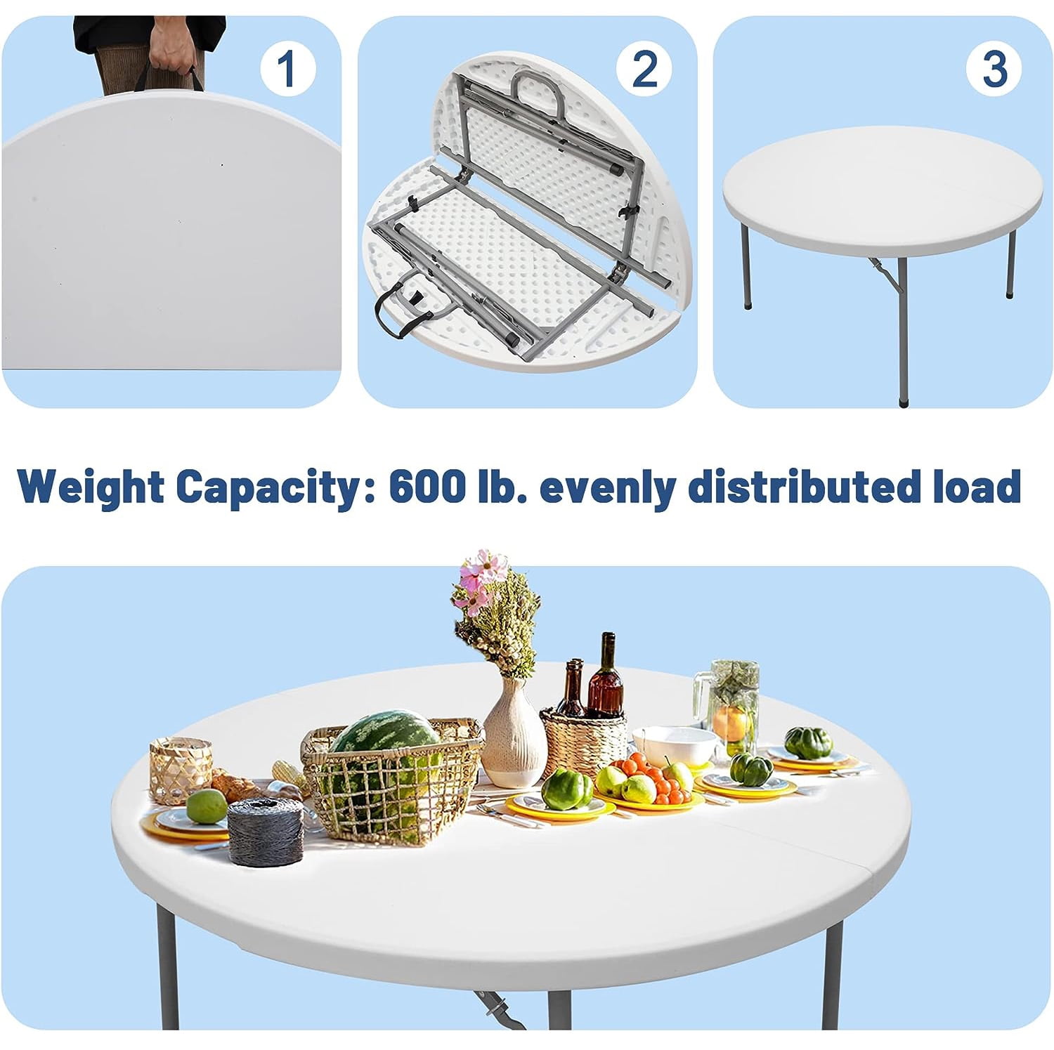 Adult Portable and Lightweight – Hosting just got much easier with this ready to use bi-fold 4′ round plastic folding table that seats up to 6 people. Attached carrying handle makes it easy to transport while the legs fold under for storage.Lightweight tabletop and frame, comes with a handle that makes it easy to carry by one person after folding. Steady and Easy Clean – Durable resin tabletop resists water, scratches, and stains making it,easy to clean with a damp cloth and resistant to rain. It helps to use in the outdoor situations and clean quickly after a gathering.this table holds up to 500 pounds and has steel legs that lock in place to keep the table steady Wide Application – This Folding Table use for parties, family reunions, trade shows, business meetings, reception areas, training rooms and banquet, whether indoor or outdoor. It can be used as a picnic table, dining table, barbecue side table, commercial table, patio table or bring it with you on a camping trip, host a picnic party in your backyard, etc. Product Measurements: Overall Size: 48″W x 48″D x 29.5″H; Folded Size: 19″W x 4.5″D x 41″H; ( No Assembly Required )