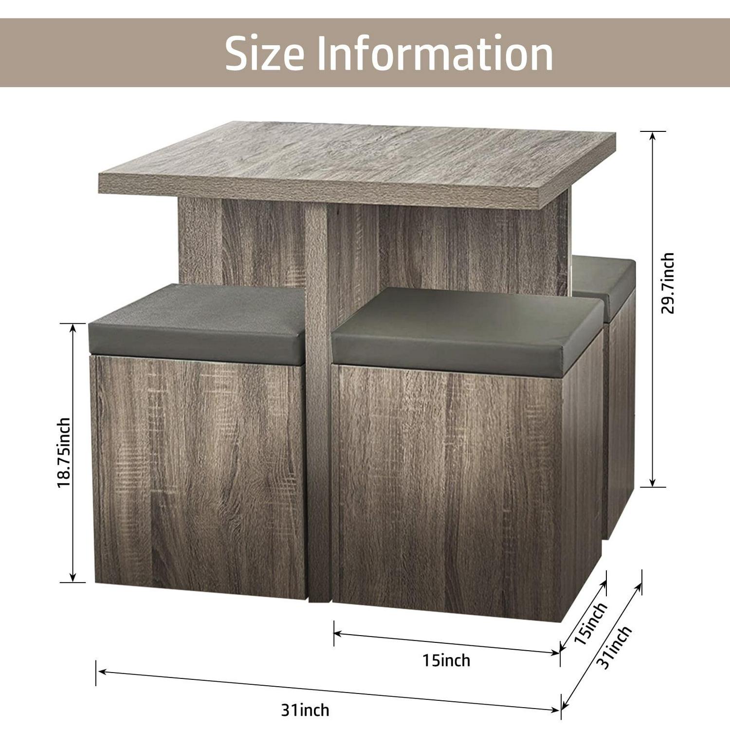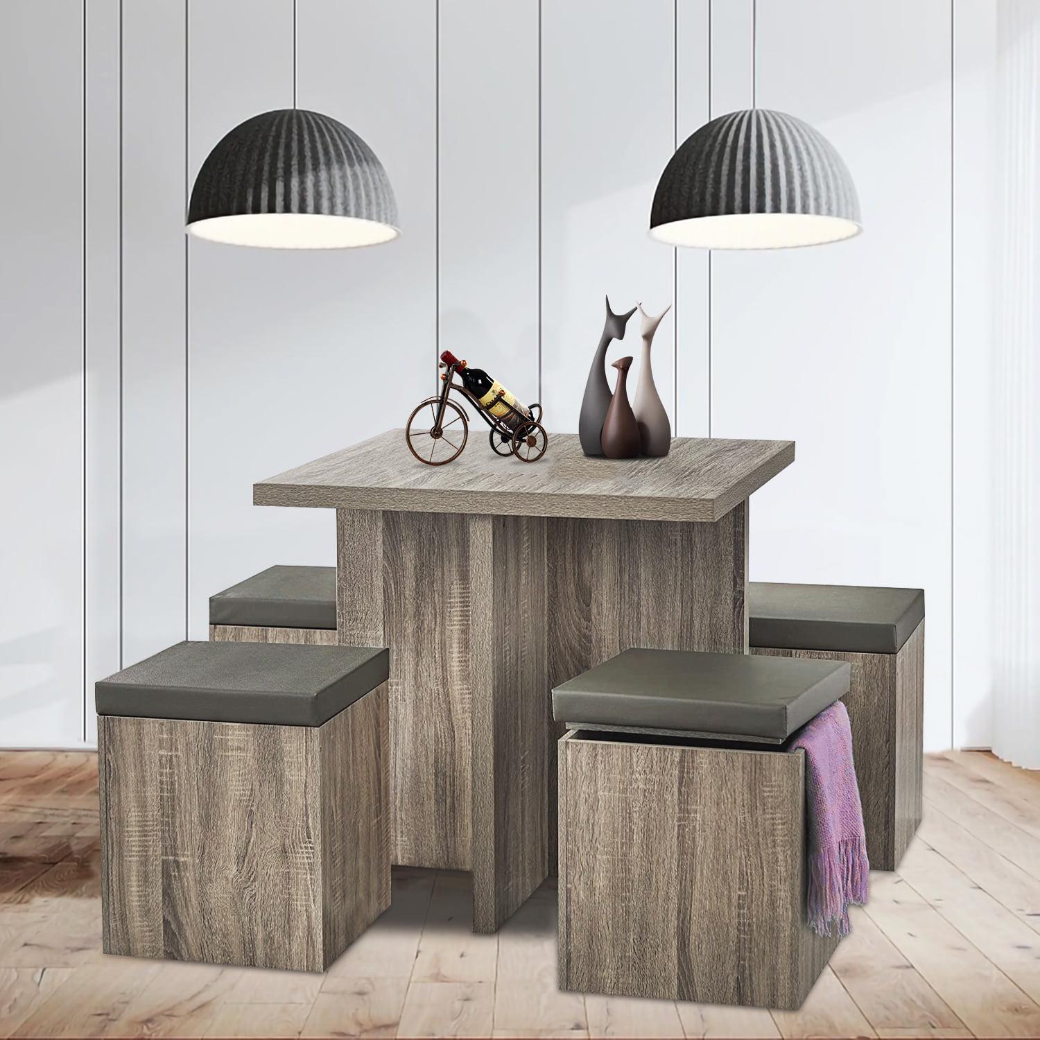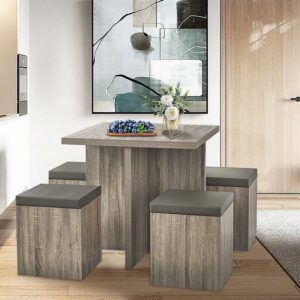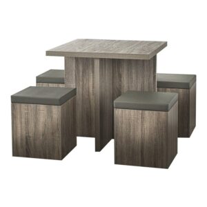 SUGIFT 5-Piece Dexter Dining Set with Storage Ottoman, Taupe