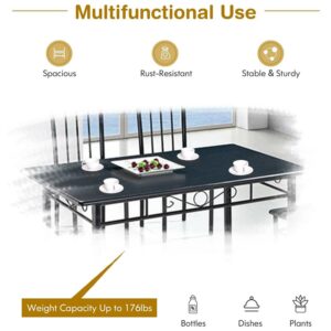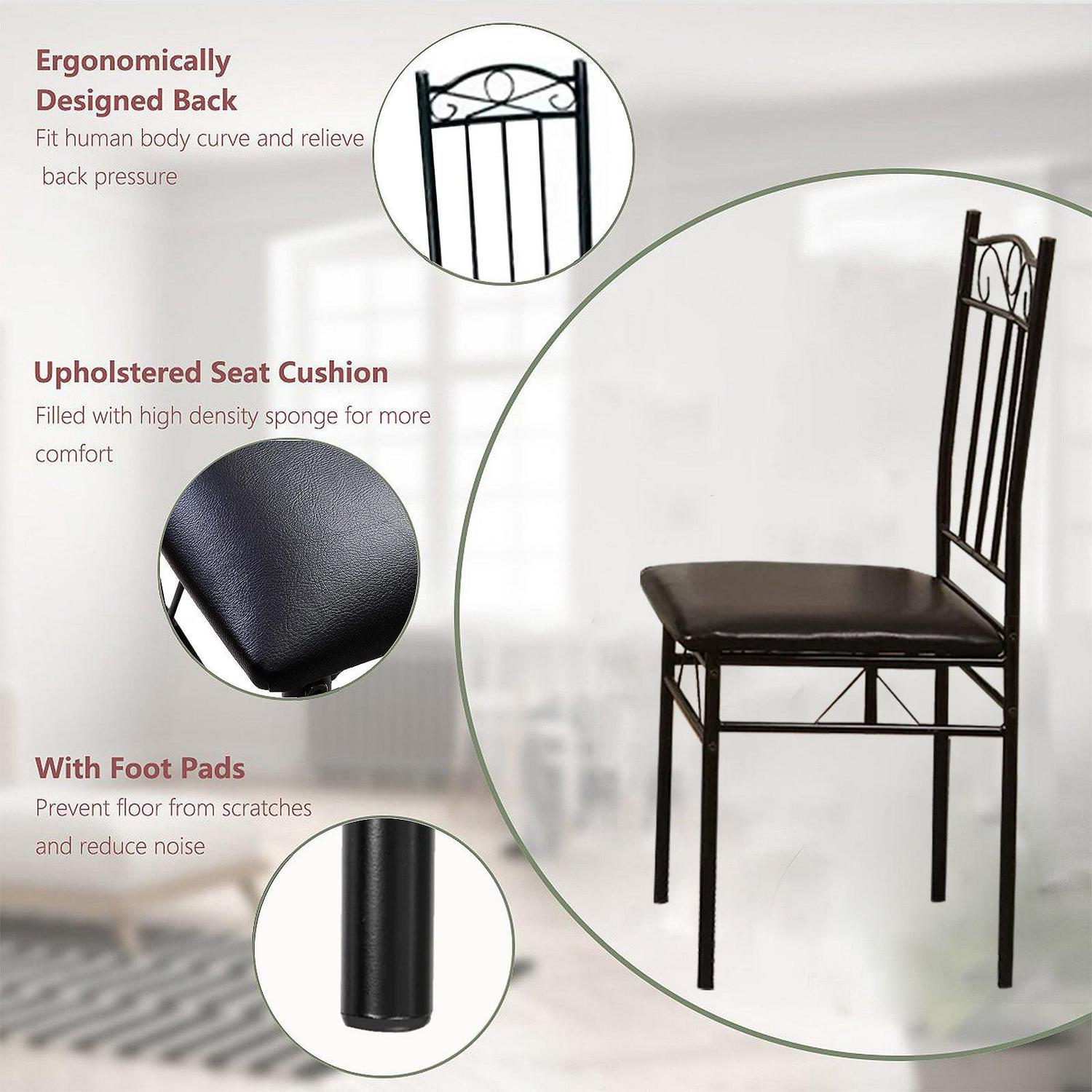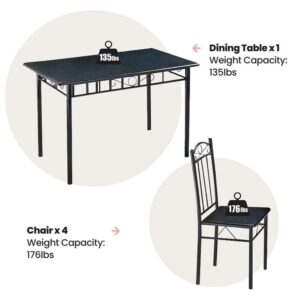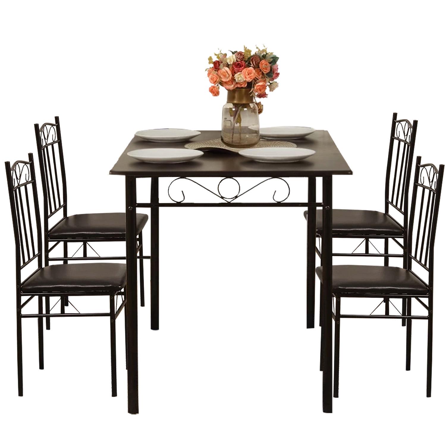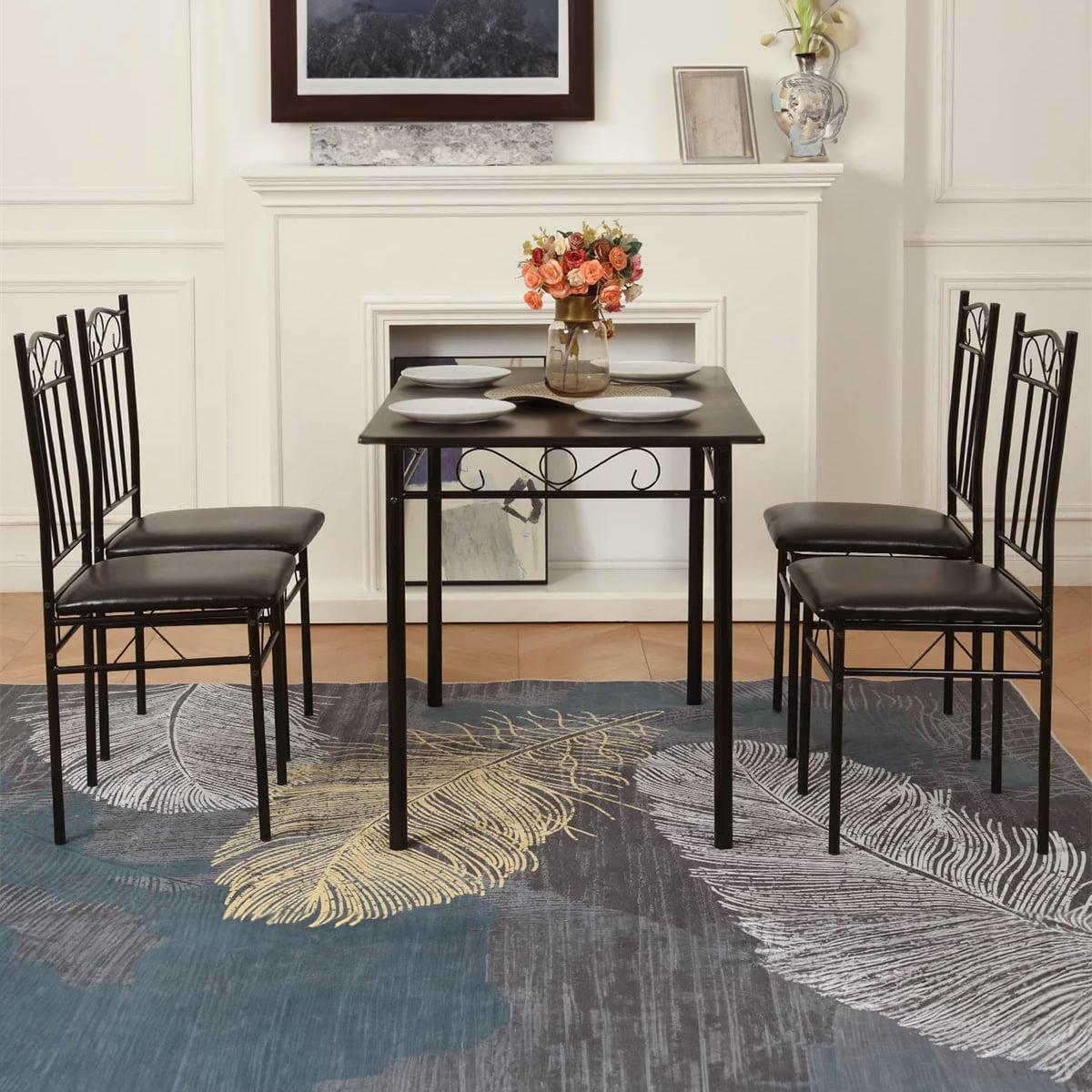 SUGIFT 5 Piece Dining Table Set Wood Metal Table and 4 PU Cushion Chairs Kitchen Breakfast Furniture, Black