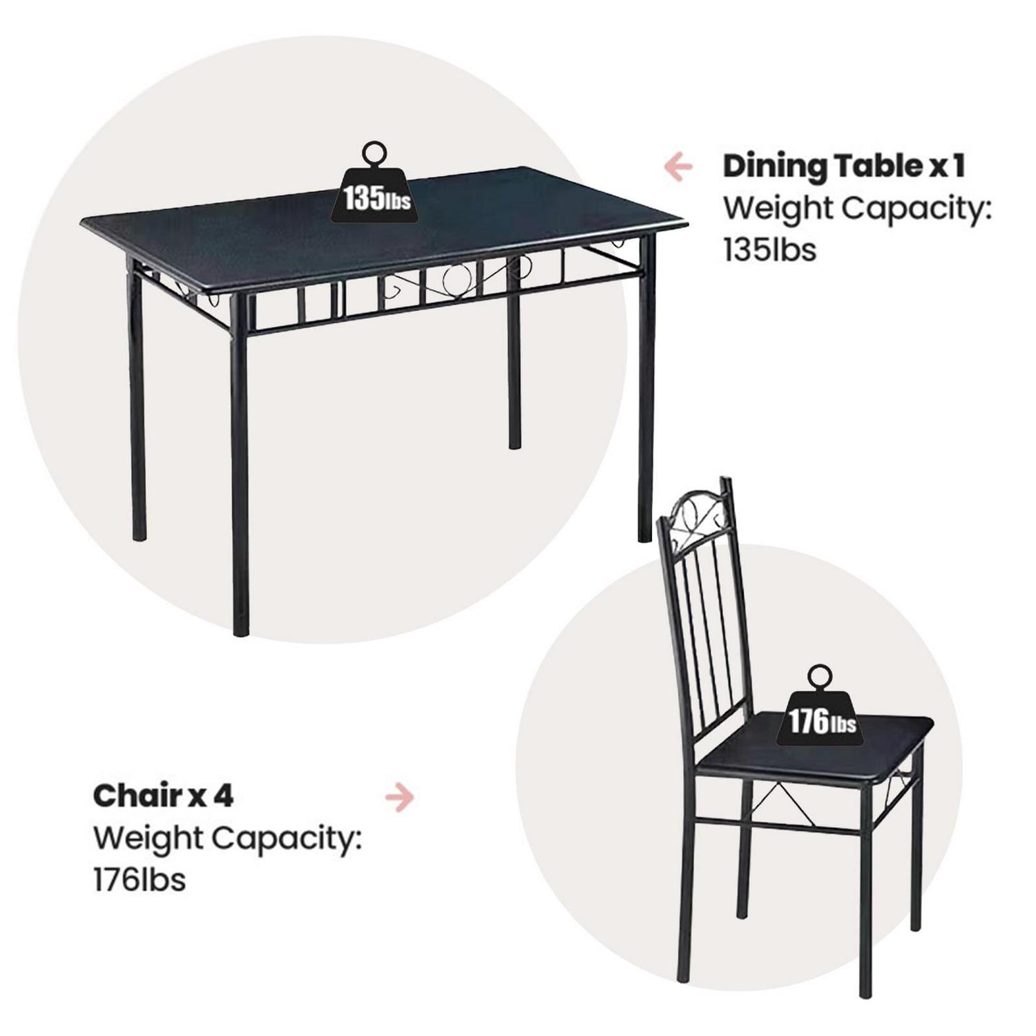 – Stable and Sturdy Structure: Made of high-quality steel, the overall structure of the 5-piece set has stronger stability and greater load capacity compared to other ordinary tables and chairs on the market. The table can withstand a maximum gravity of 132 lbs while each chair is 176 lbs.