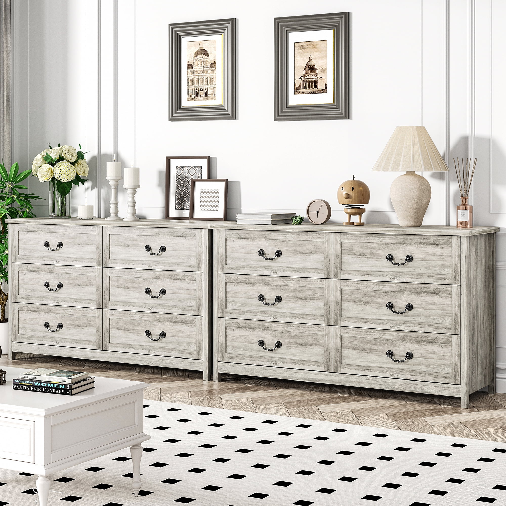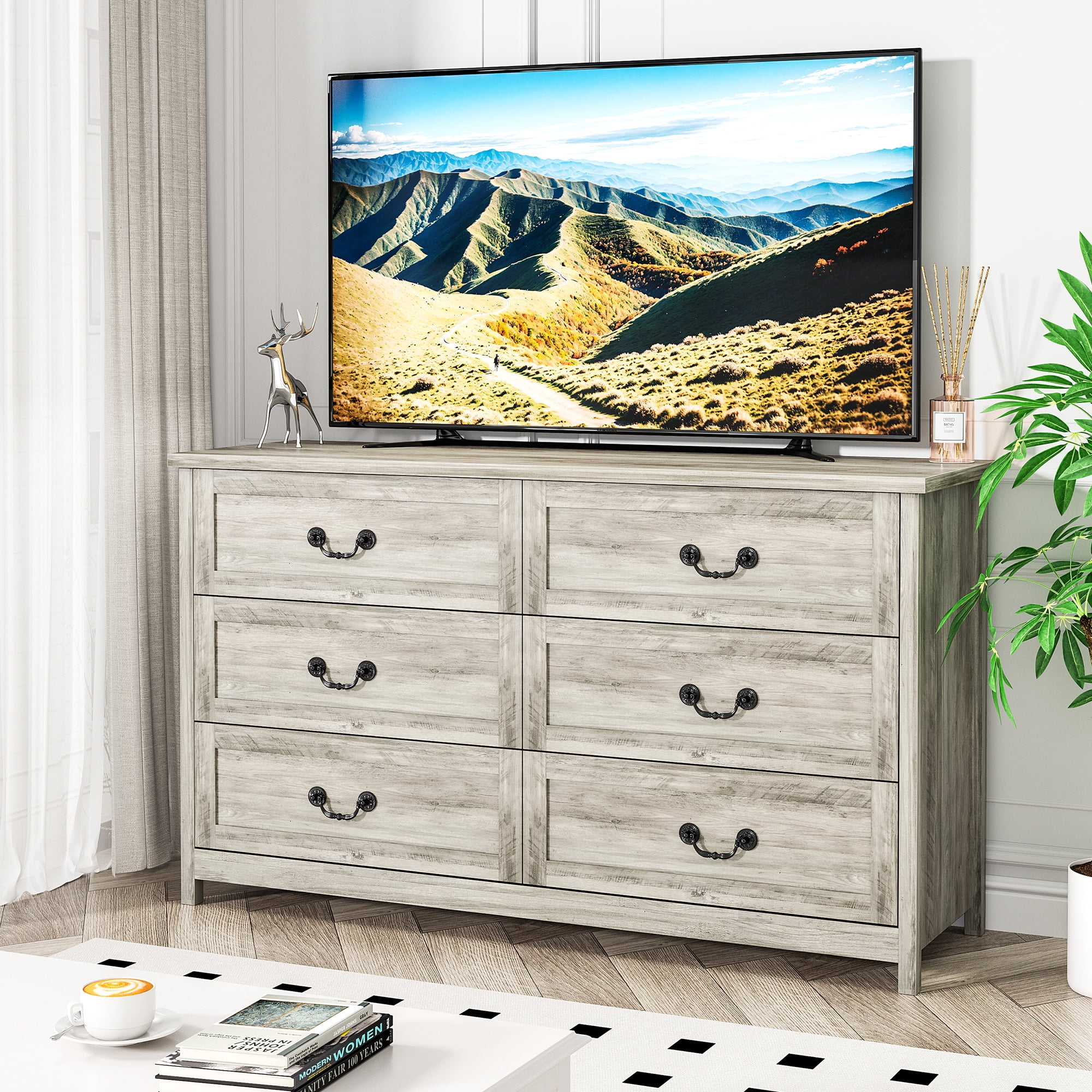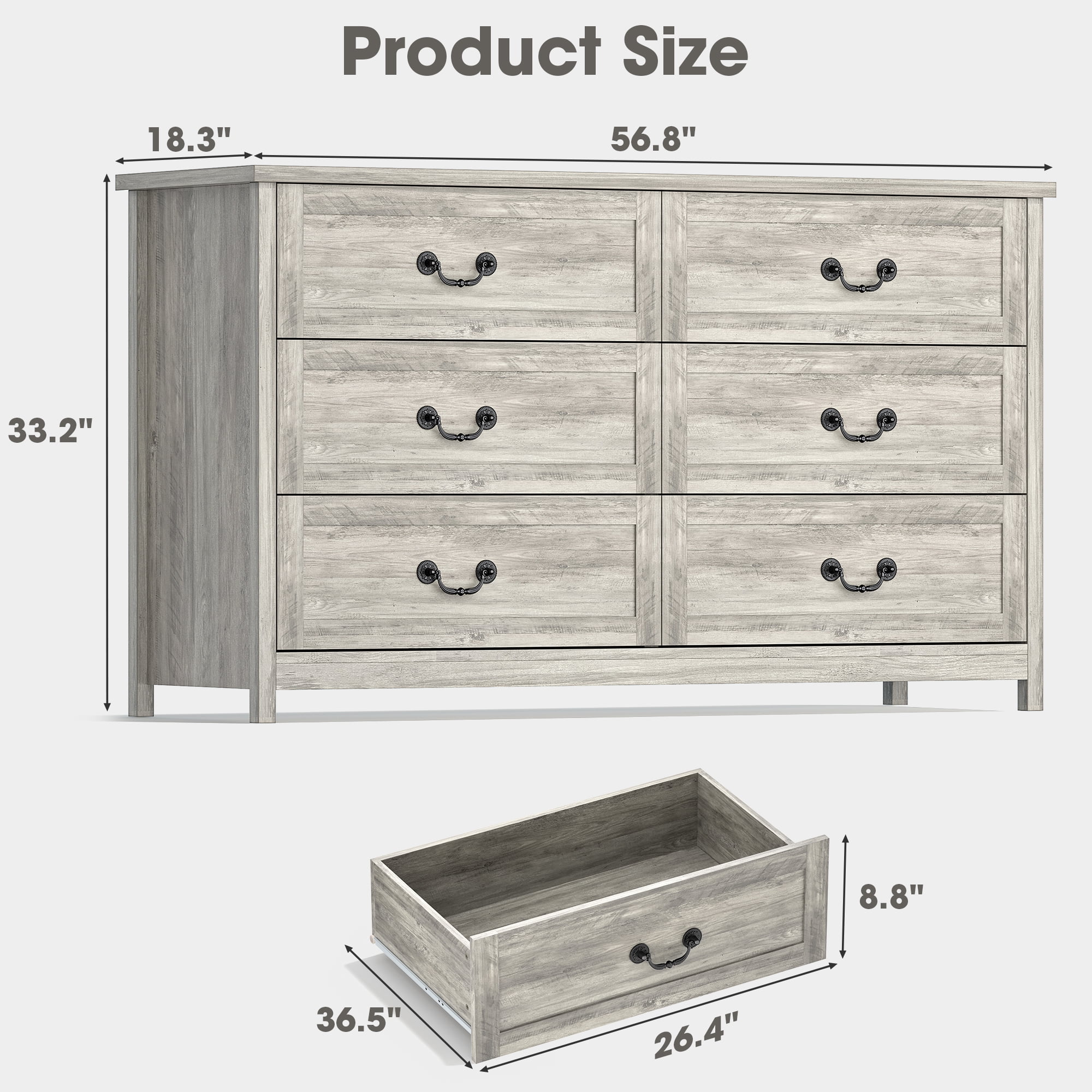 SUGIFT Modern 6-Drawer Dresser for Bedroom, Rustic Gray Finish
