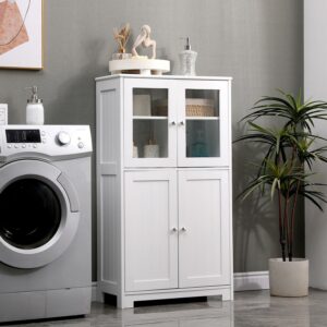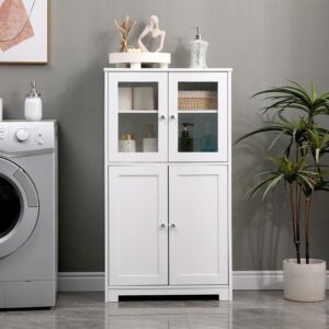 Fancy a fuss-free bathroom update Try this storage cabinet and ready to fill with toiletries, toothbrushes, cleaning products and more. Inside, it has adjustable shelf heights to meet your needs. Is it only a bathroom cabinet Of course not! Ideally put in the bedroom, living room as a storage floor cabinet; as an entrance cabinet in the hallway, as office cabinet in study or studio, you could call it whatever you like for its multifunctionality.The beautiful fresh white finish makes a statement while creating an open concept feel that is modern and new, this floor cabinet perfectly accents your underlines taste, sure to catch your eye.The freestanding linen cabinet is built of premium MDF with a fine white finish. Waterproof and wet-proof and can last for years in terms of regular use