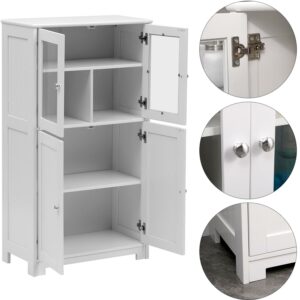 SUGIFT Bathroom Cabinet, Linen Storage Cabinet with Doors Adjustable Shelves White-Upgrade hinge