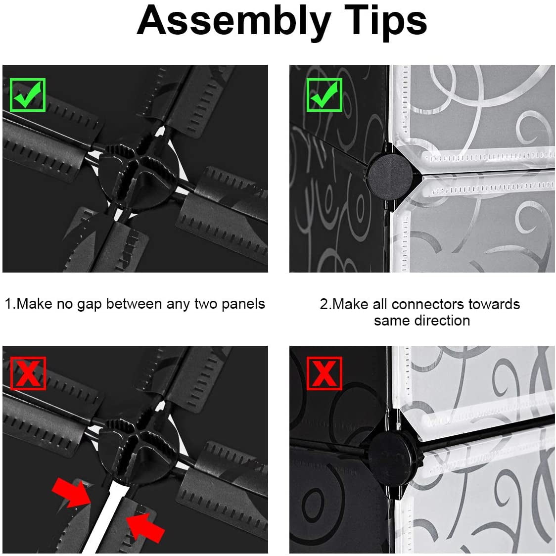 SUGIFT 12-Cube Storage Organizer Whether you’re struggling to make room more organized, or just need to add a little organization to a room, a premium DIY Closet Organizer Storage Cabinet like SUGIFT 12-Cube Organizer perfect for an understated style and handy storage. There is no need for screws, just putting them together with included hammer within 10~30 minutes. Adequate Storage Space: 12 cubes are available for storage. You can store all sort of items as you want: books, clothes, toys, artworks, decorations and more. The size of each cube is 14x 14 x14 inch, providing large space to hold more things. Please note: it fits storage bin that is smaller than 13.5*13.5 inch. Customized Shape: There are 12 cubes provided, you can create the storage organizer in varieties of shapes to meet your needs. Besides, it can be freely adjusted due to the limited space to fit in. Various Function: This cube storage can be used in many places: a collection shelf in your study room, a clothes organizer in your bedroom, a display shelf in entryway, and a toy storage solution in kids room. Wide Application: Our closet organizer can be widely used at home, office or college dorm. It helps you store so many things and separate them in well organized way. Stable Structure: Constructed from high quality ABS connector and thickened PP panel, the max load capacity of each cube is up to 15 lbs, this closet shelving is really stable. Space Saving: There are 12 cubes available for storage, large space provided, which can store many things, save your room space and keep your room clean and tidy. Modern Design: This book shelf is black in color and simple in design, so that can easily match any style no matter where you place it. 46 x Panels 14 x Feet Connectors 40 x Standard Connector 1 x Mallet 1 x Instruction manual
