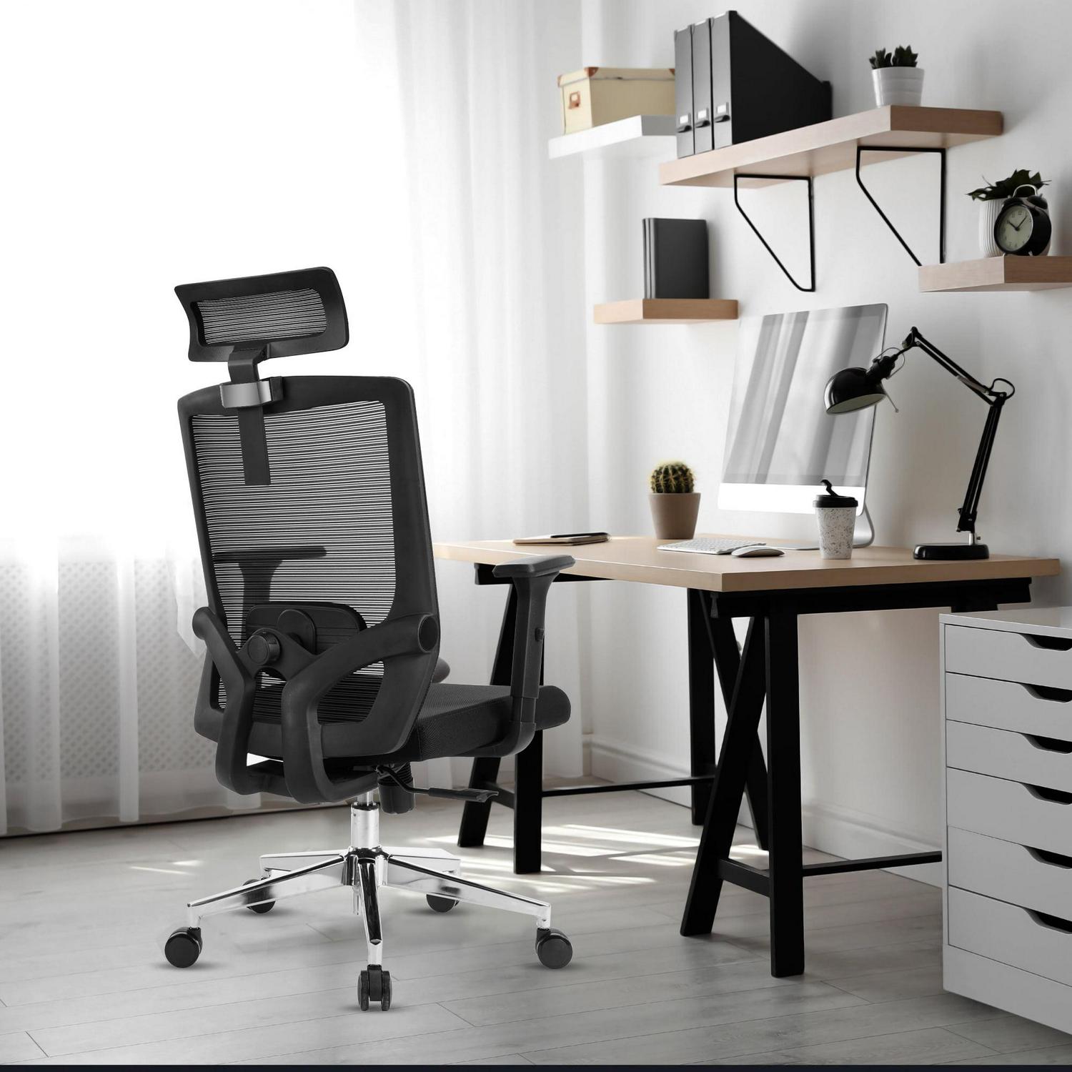 – Height adjustable headrest provides additional support to your neck to help relieve tension in your shoulders while you work