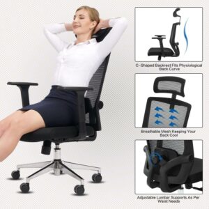 SUGIFT Ergonomic Office Chair with Adjustable Computer Chair with Lumbar Support Swivel, Black