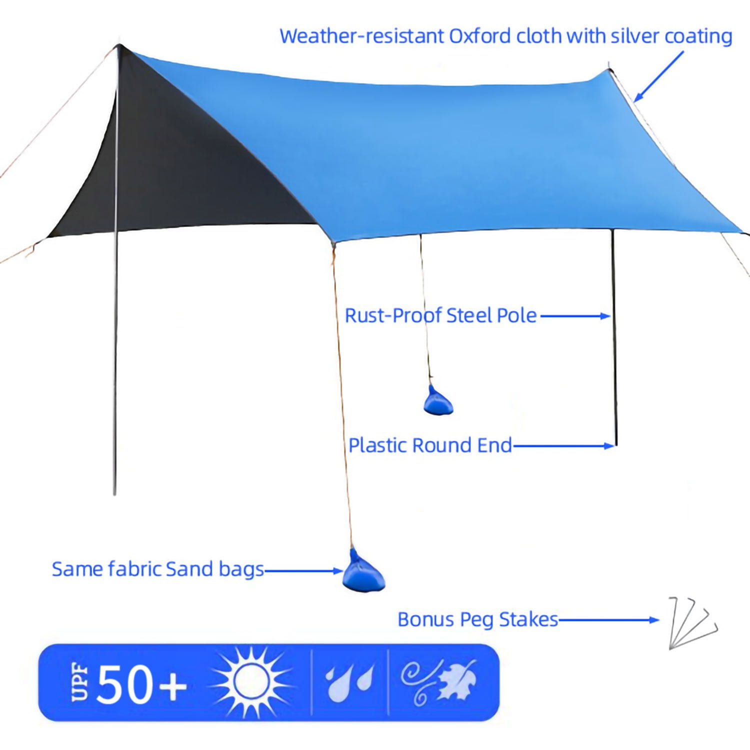 About this item Easy to pack up and throw in your luggage, SUGIFT Tents offers coverage and protection when you’re exploring outdoors or on the go. Crafted with advanced water-resistant fabric and offering UPF 50+ sun coverage our sun tents for beach and outdoor use block out harmful UV rays to reduce sun burn or glare making it ideal for kids or adults laying out. Each beach tent sun shelter pop up sets up easily and comes with stability poles and anchors that let you use it over sandy beaches, thick grassy areas, or even in rocky camping spots. Meanwhile,We want you to take your beach canopy sun shelter pop up everywhere which is why it’s not only easy to set up and anchor to the ground it comes with a travel bag to keep it all safe and organized. Enjoy relaxing on the beach, kicking back fishing on the side of the lake, or enjoying some family time at the park with a sun shelter that you can set up almost anywhere. Perfect for friends, family and good times. High quality supporting pole, sand bags and matching peg stakes for added stability UPF50 UV Sun Protection – This is equivalent to screening out 98% of direct UV Sunlight. Extremely light, durable, tear resistant and even water repellent for long-term use Carry-on bag provided and allowing you to have all the parts packed inside Suitable for the beach, picnics in the park, camping, the sidelines at your kids’ sports games,or the backyard. It’s cool, easy to set up and perfect for spending time outdoors with friends and family.