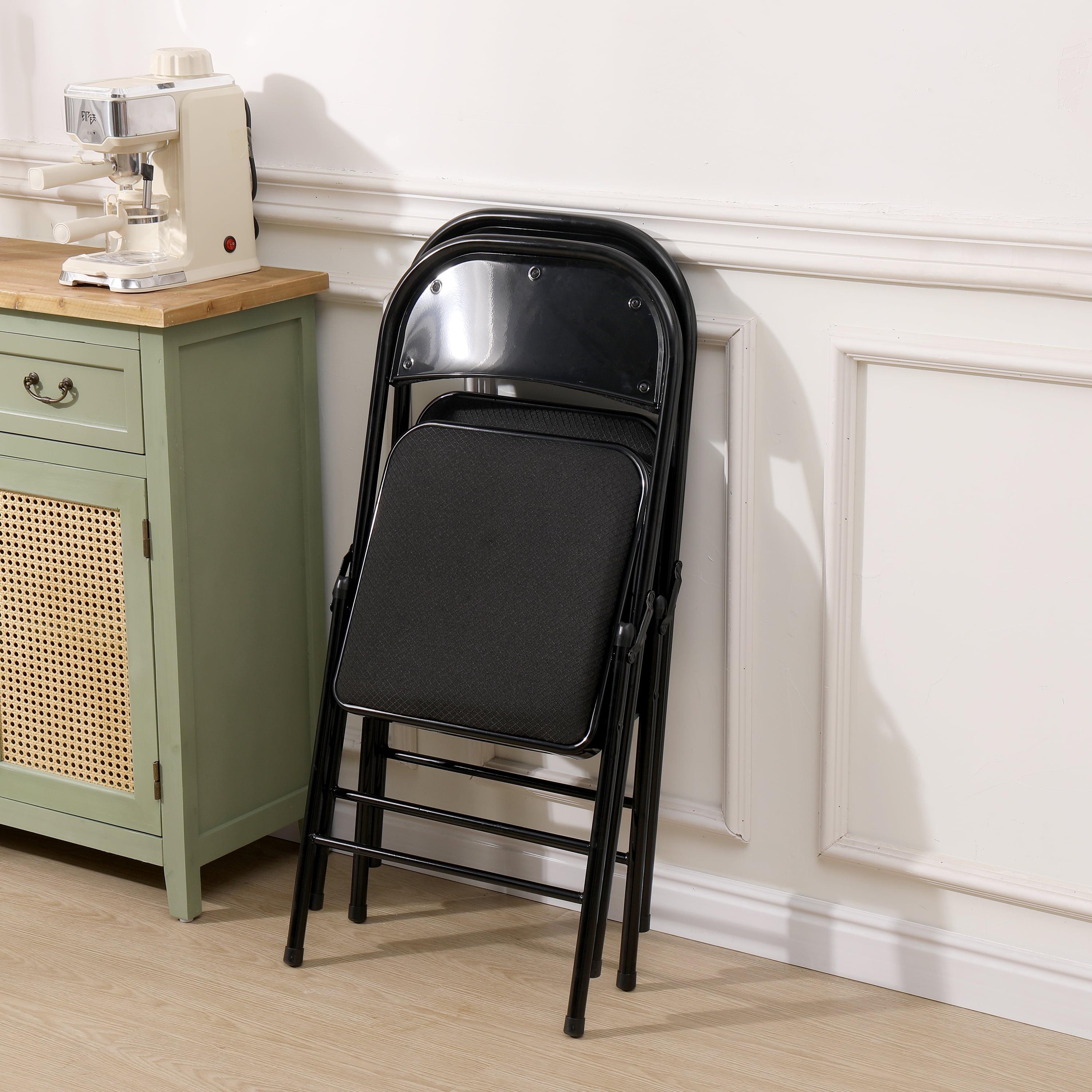SUGIFT Folding Chairs Set of 4 Fabric Cover Padded Folding Chair, Black